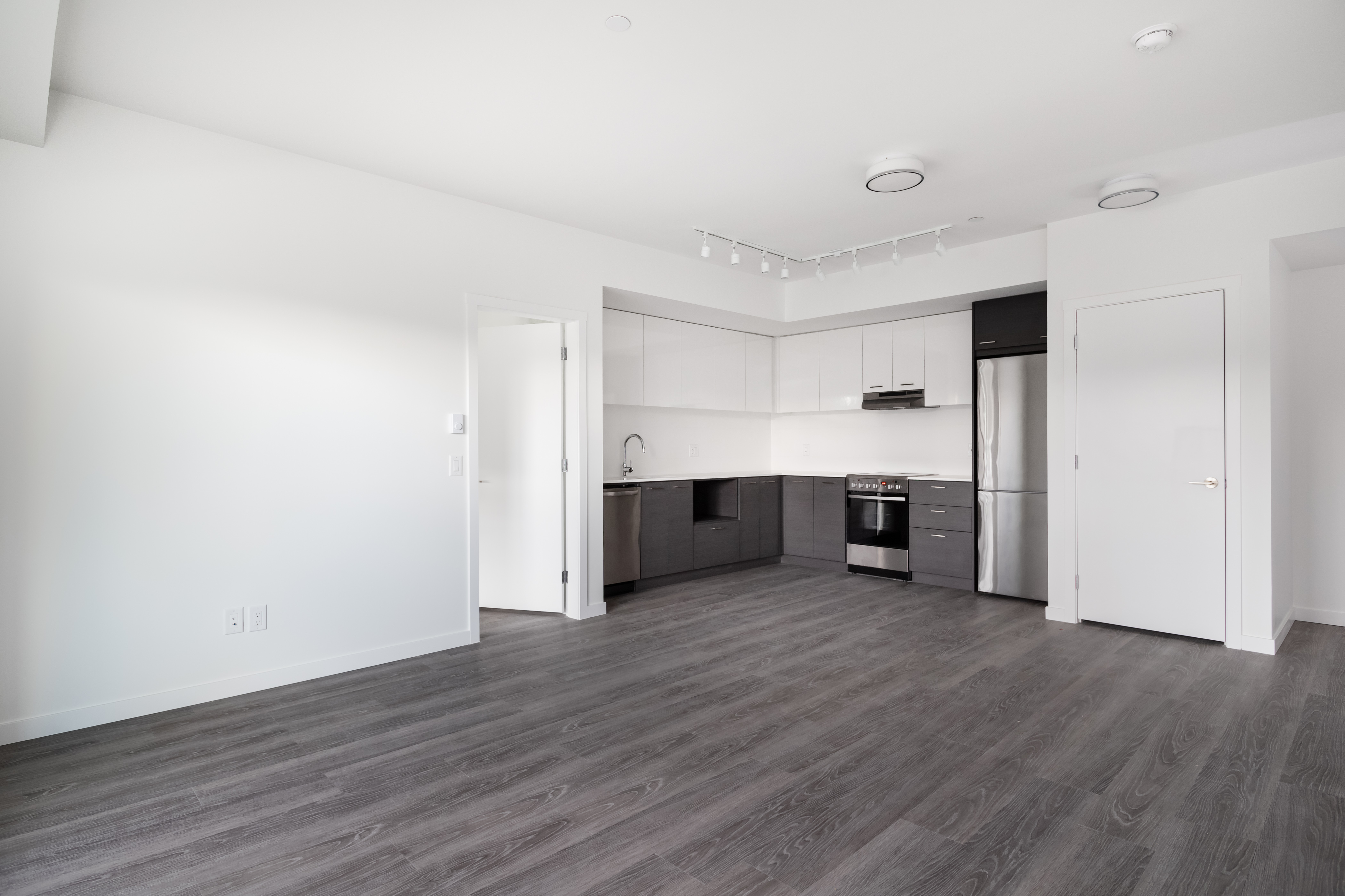 Unique to the top floor, our D5 plan is expertly laid out. With rooms on opposing sides, and two bathrooms, this floor plan is the perfect home those looking for an extra bit of privacy. The large, 300sqft terrace looks East over Emerson street, and offers quiet views of the mountains. This corner suite features an L-shaped kitchen to maximize countertop space while leaving you with a flexible, open concept. A full stainless-steel appliance package finishes this quality kitchen. Enjoy the comfort of in-suite laundry, deep soaker tubs, and plenty of closet space.