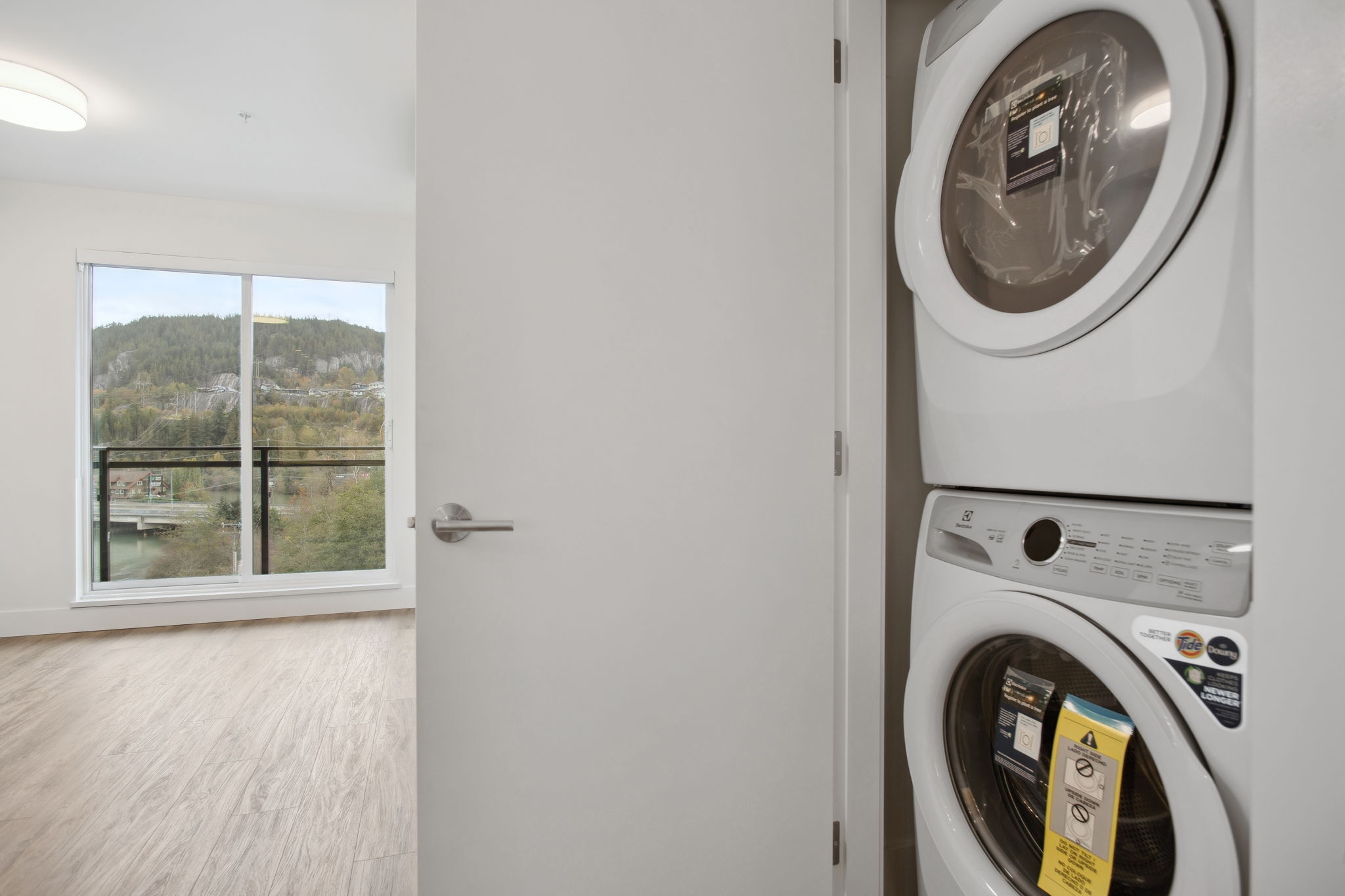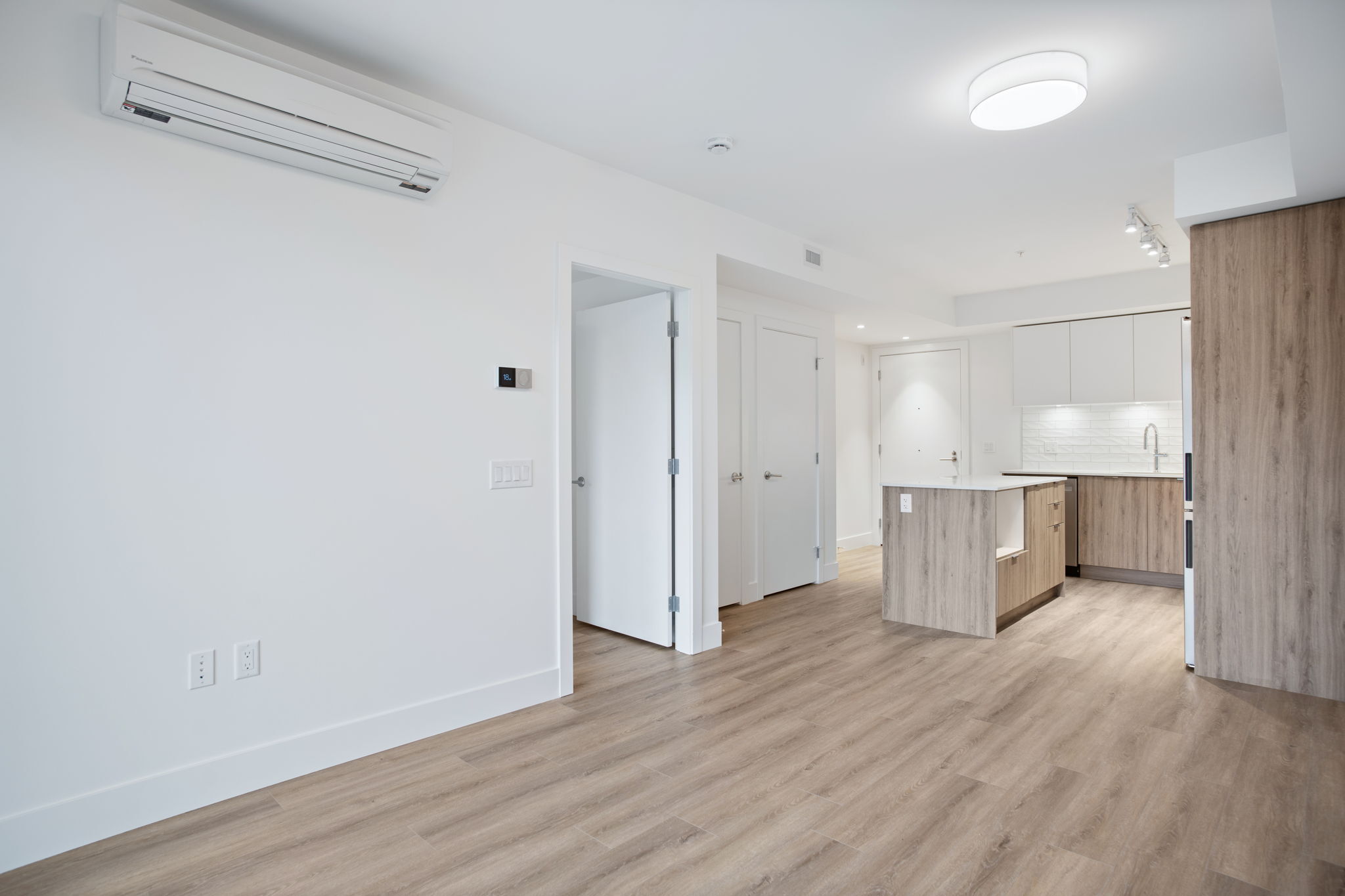 Our B2 layout offers a large corner kitchen with an island offering plenty of countertop and storage space. With natural finishes, the suite is light and airy. An open concept living space allows you to furnish your suite to fit your needs. All suites include mountain views, in-suite laundry, dishwasher and A/C.