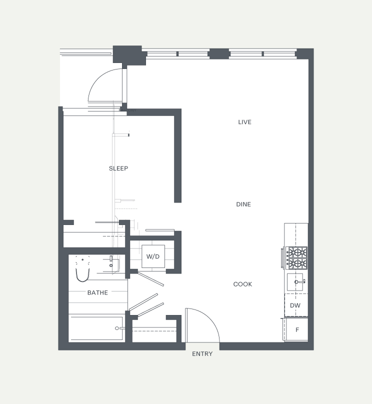This 1BR suite faces east and features modern finishes including: stone countertops, vinyl plank floors and a full appliance package. Savour the sunrise with a morning coffee on the balcony and enjoy the people watching on the street below.