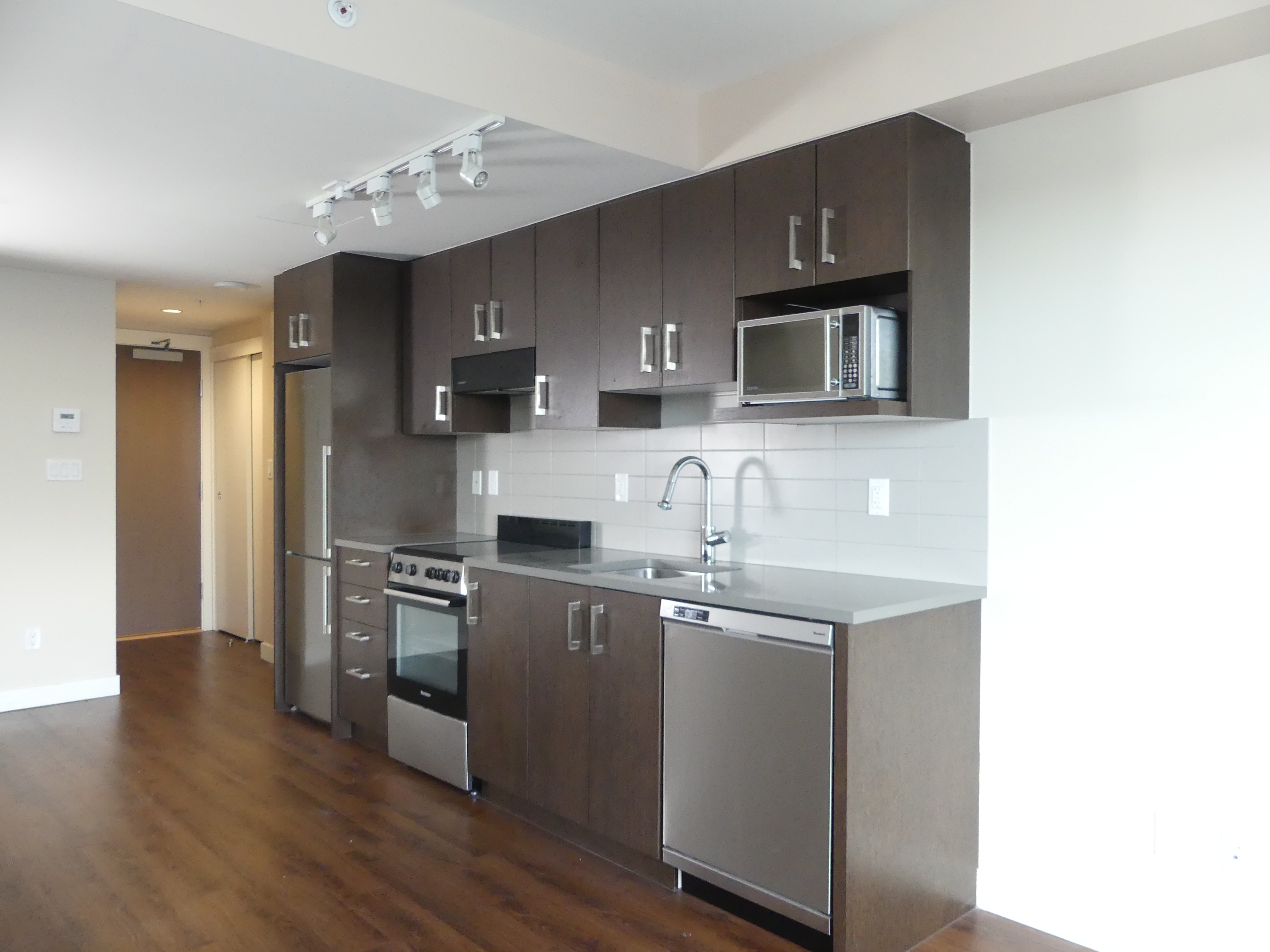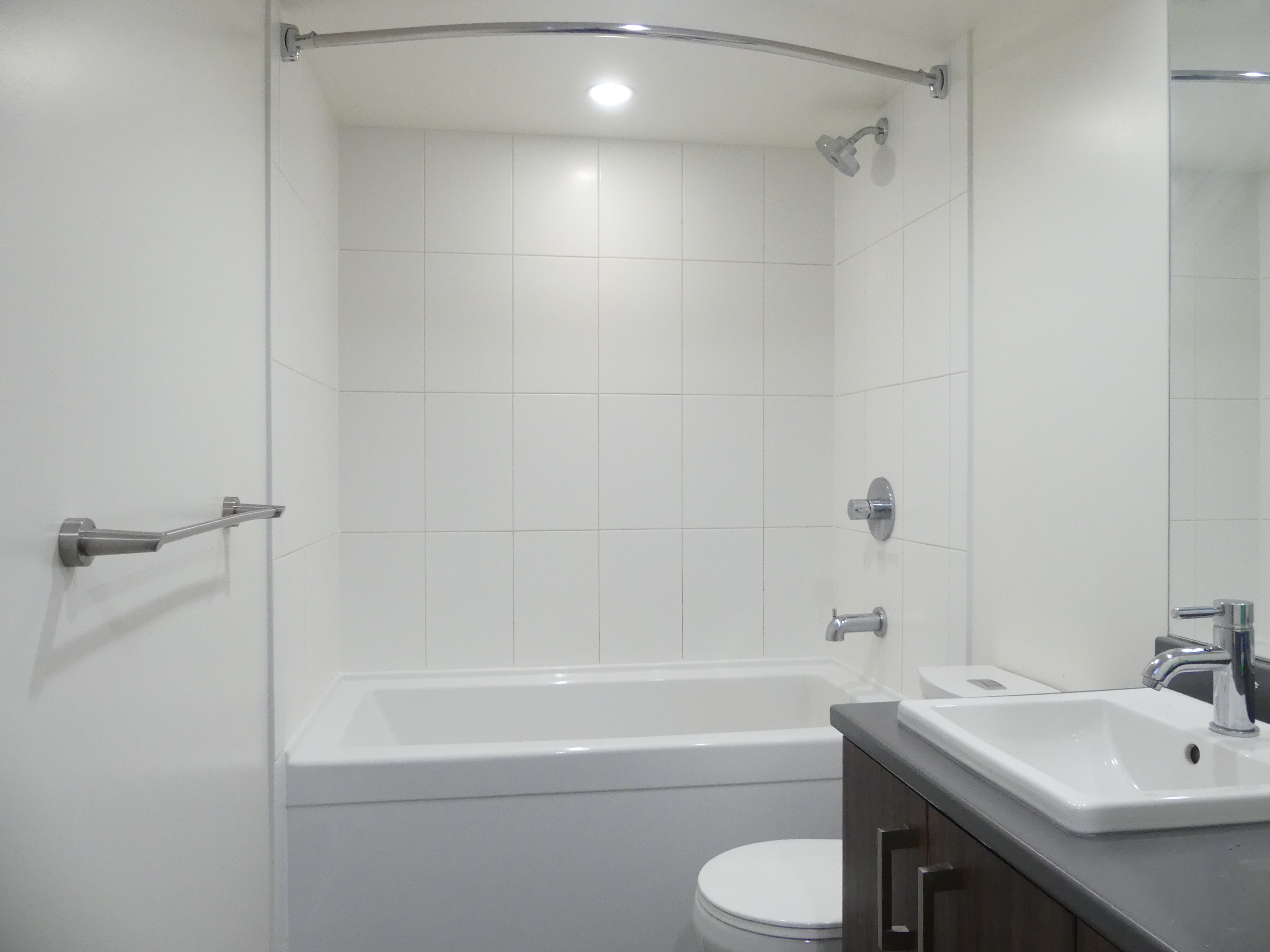 Our J plan is our 345sqft studio. Located on the east side of the building, this home faces toward Main Street. This is an open concept bachelor suite, a great solution for students. A galley kitchen features stainless-steel appliances including a dishwasher & microwave. This home is finished with low-flow faucets, LED lights and other amazing eco-friendly solutions, meaning you can feel good about reducing your carbon footprint.