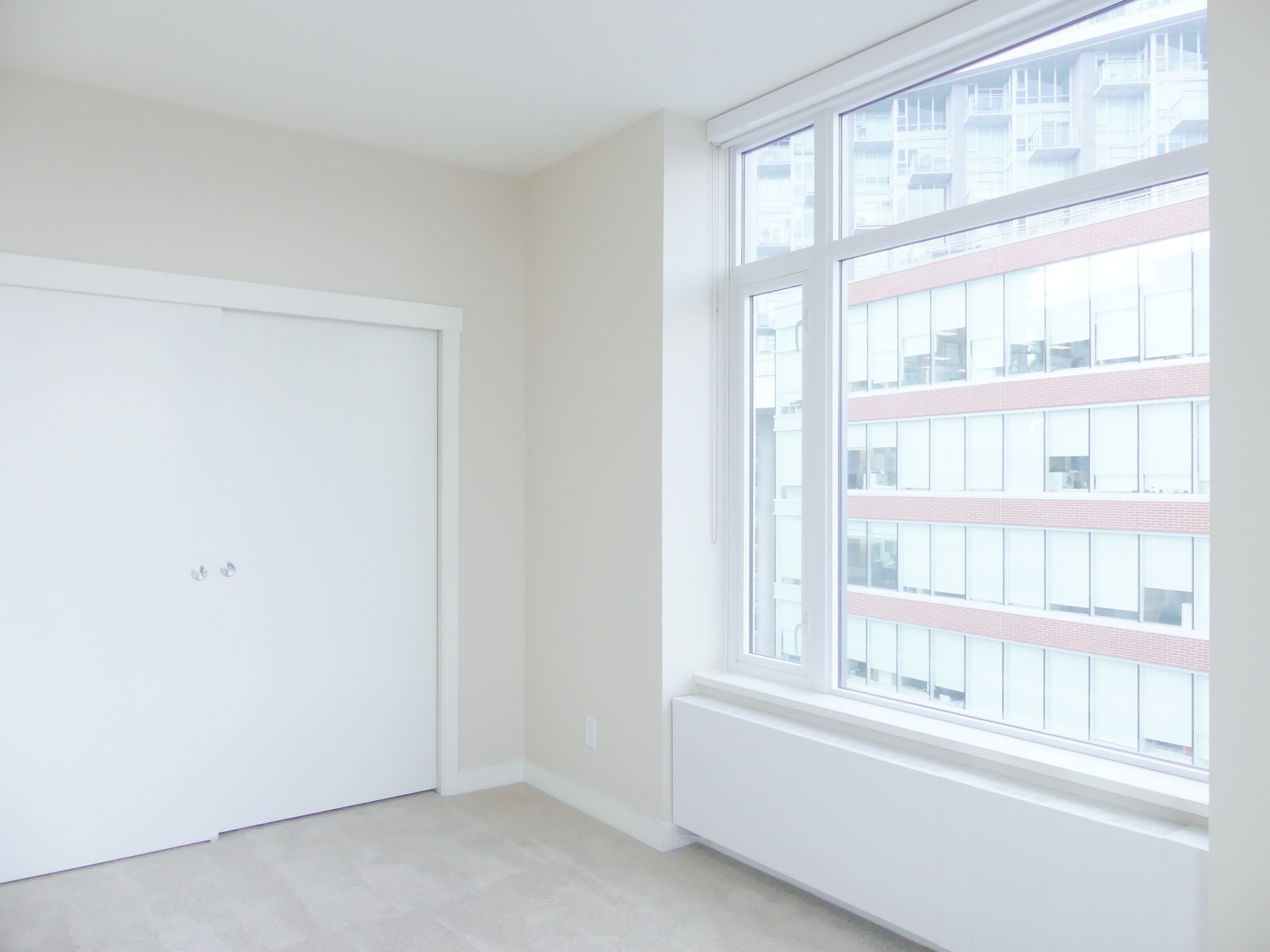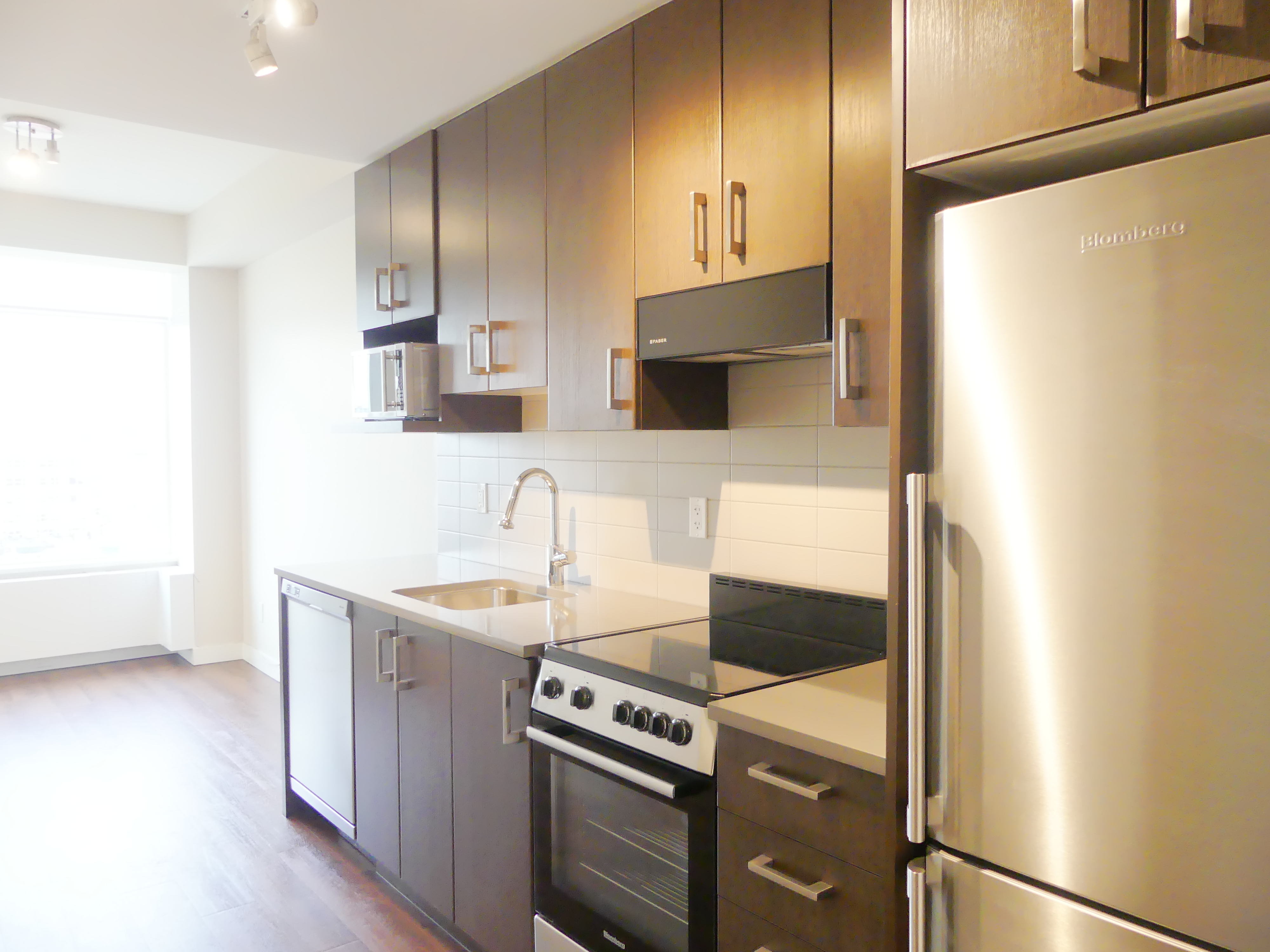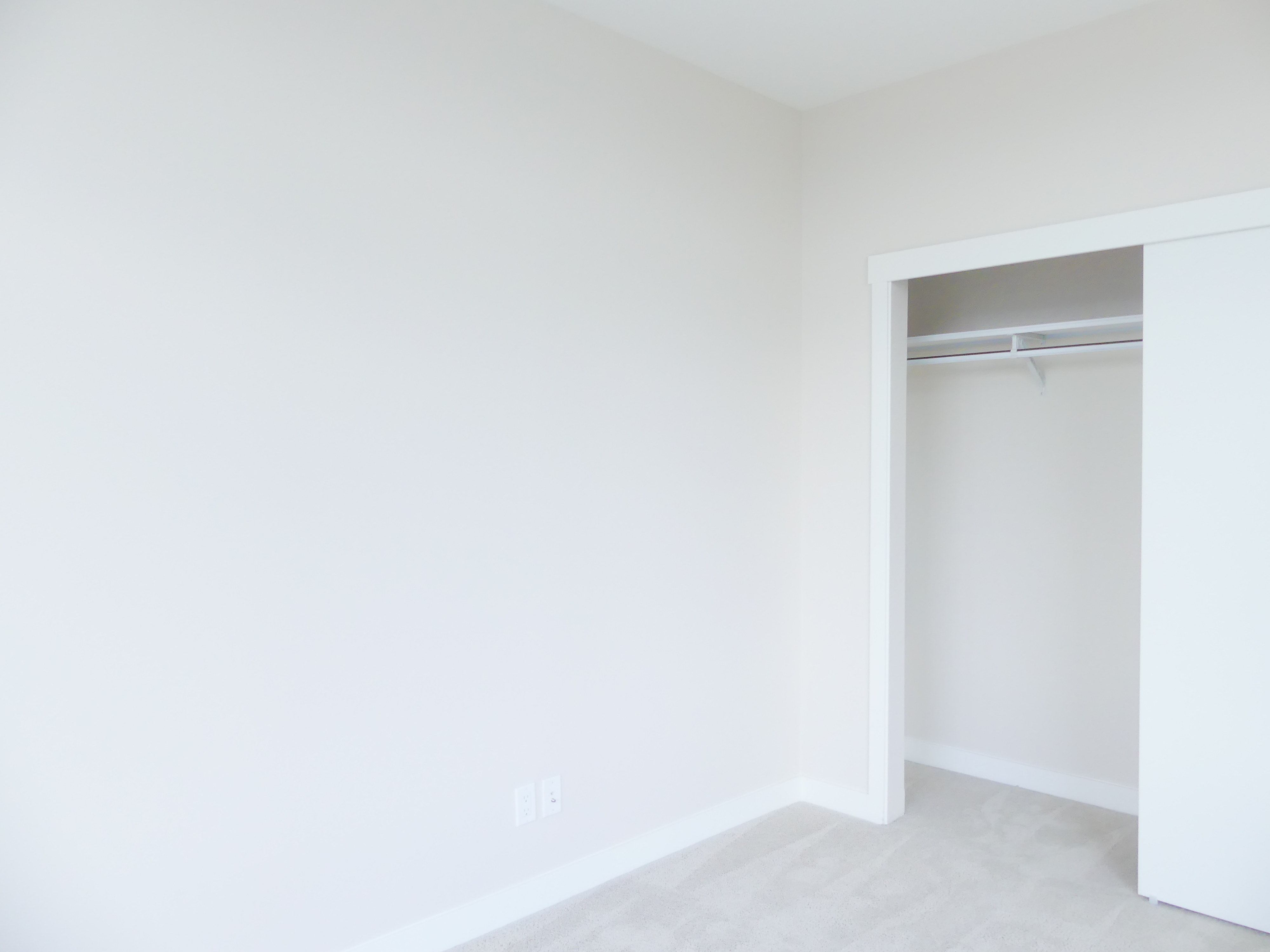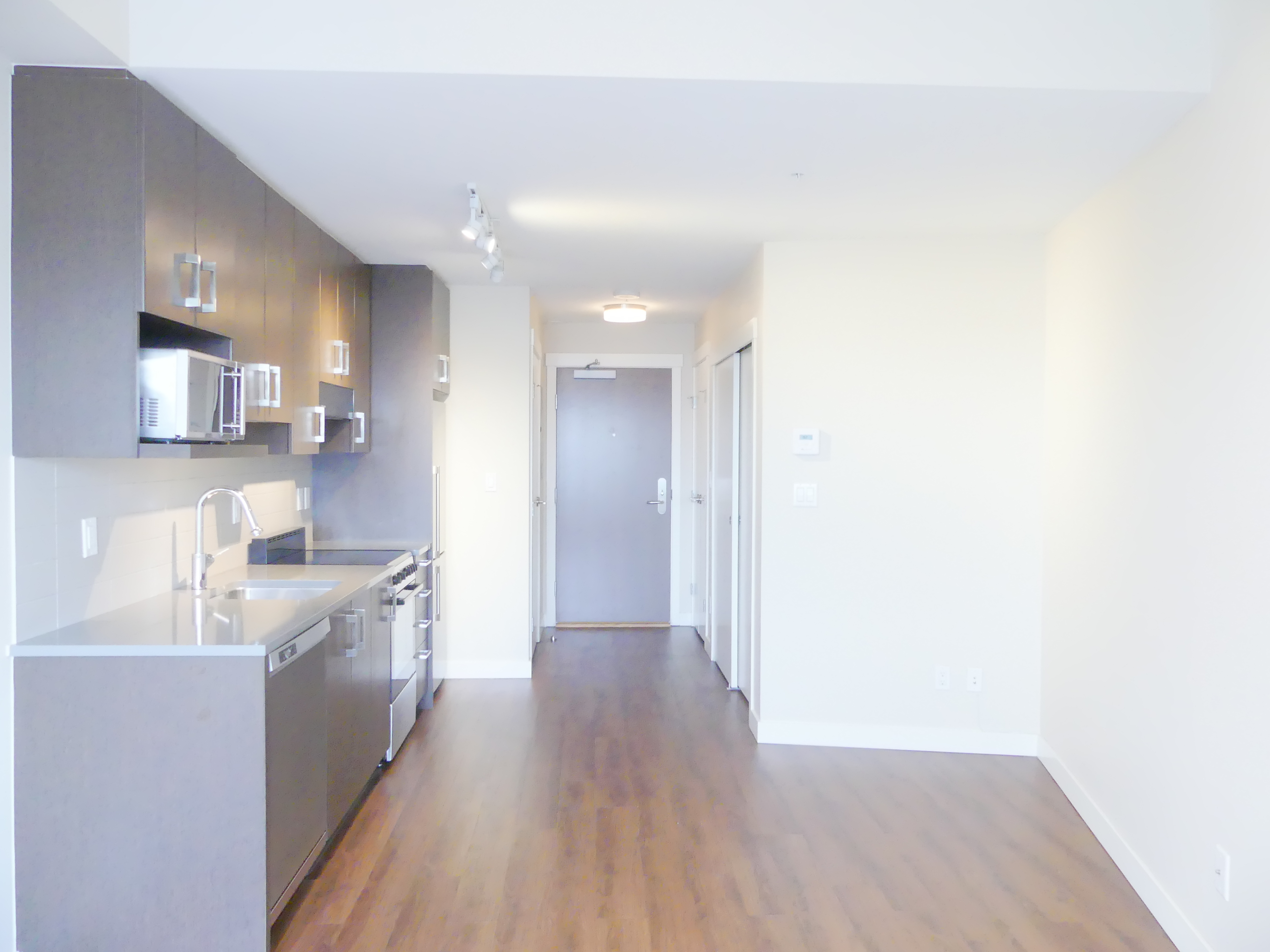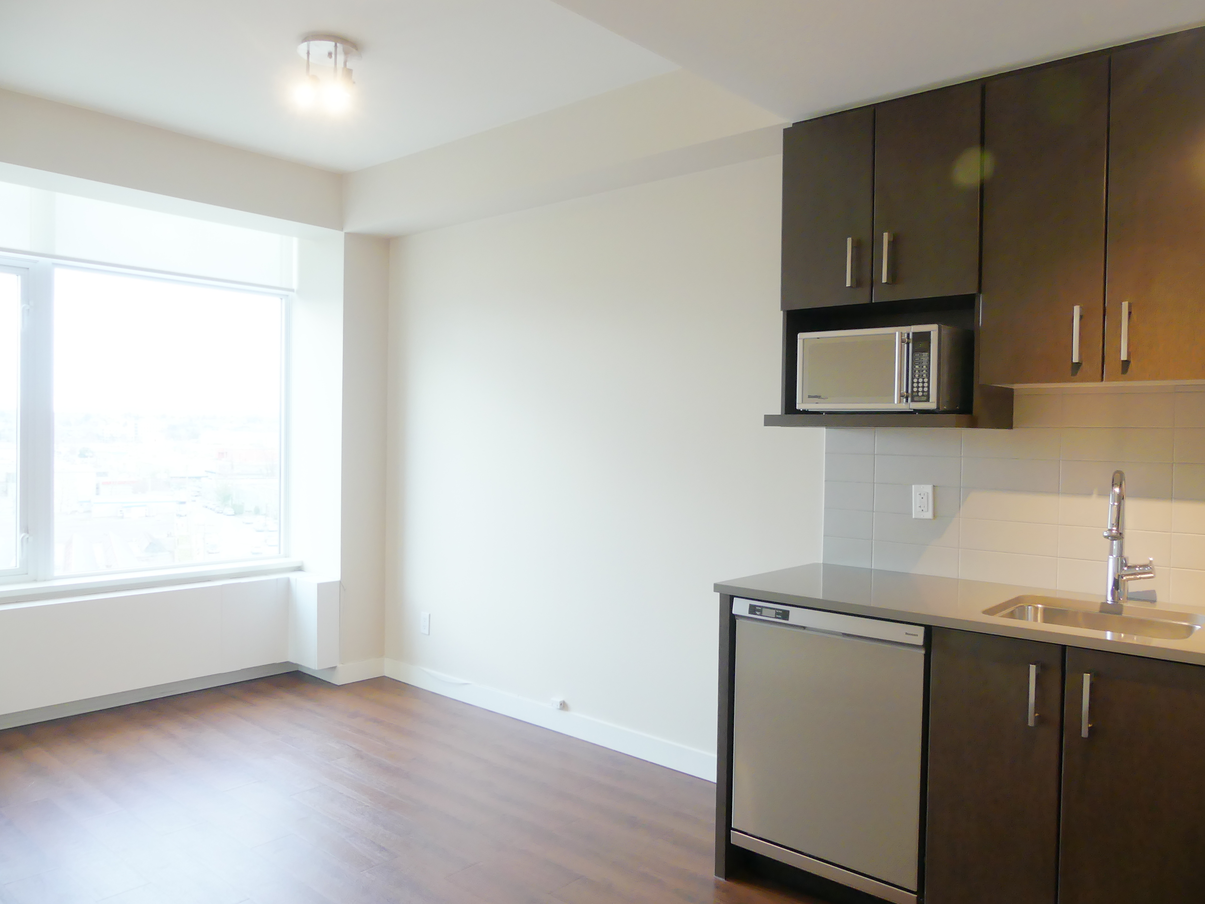 Our A plan is a bright and sunny corner suite. With large, wrap-around windows, this suite looks north and east. This 502sqft home has a large bedroom which easily fits a bed of any size, and has plush carpet. A galley kitchen features stainless-steel appliances including a dishwasher & microwave. This home is finished with low-flow faucets, LED lights and other amazing eco-friendly solutions, meaning you can feel good about reducing your carbon footprint.