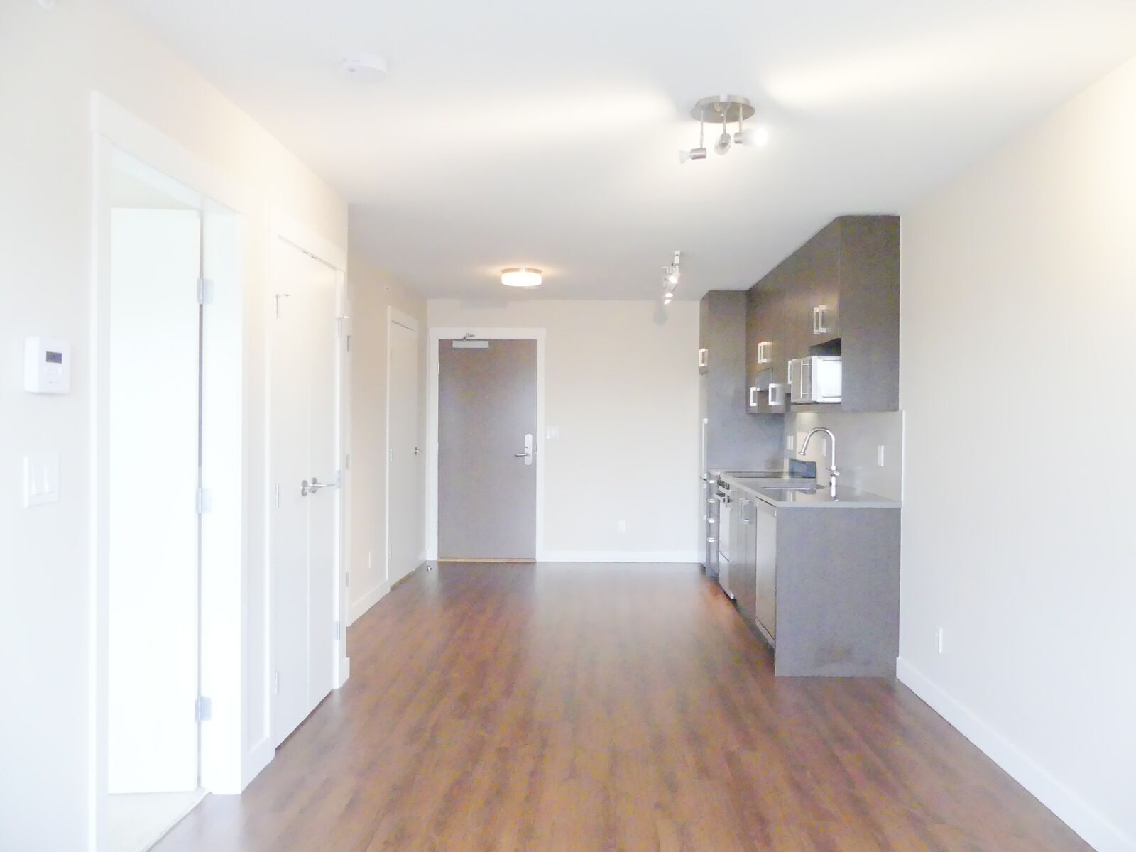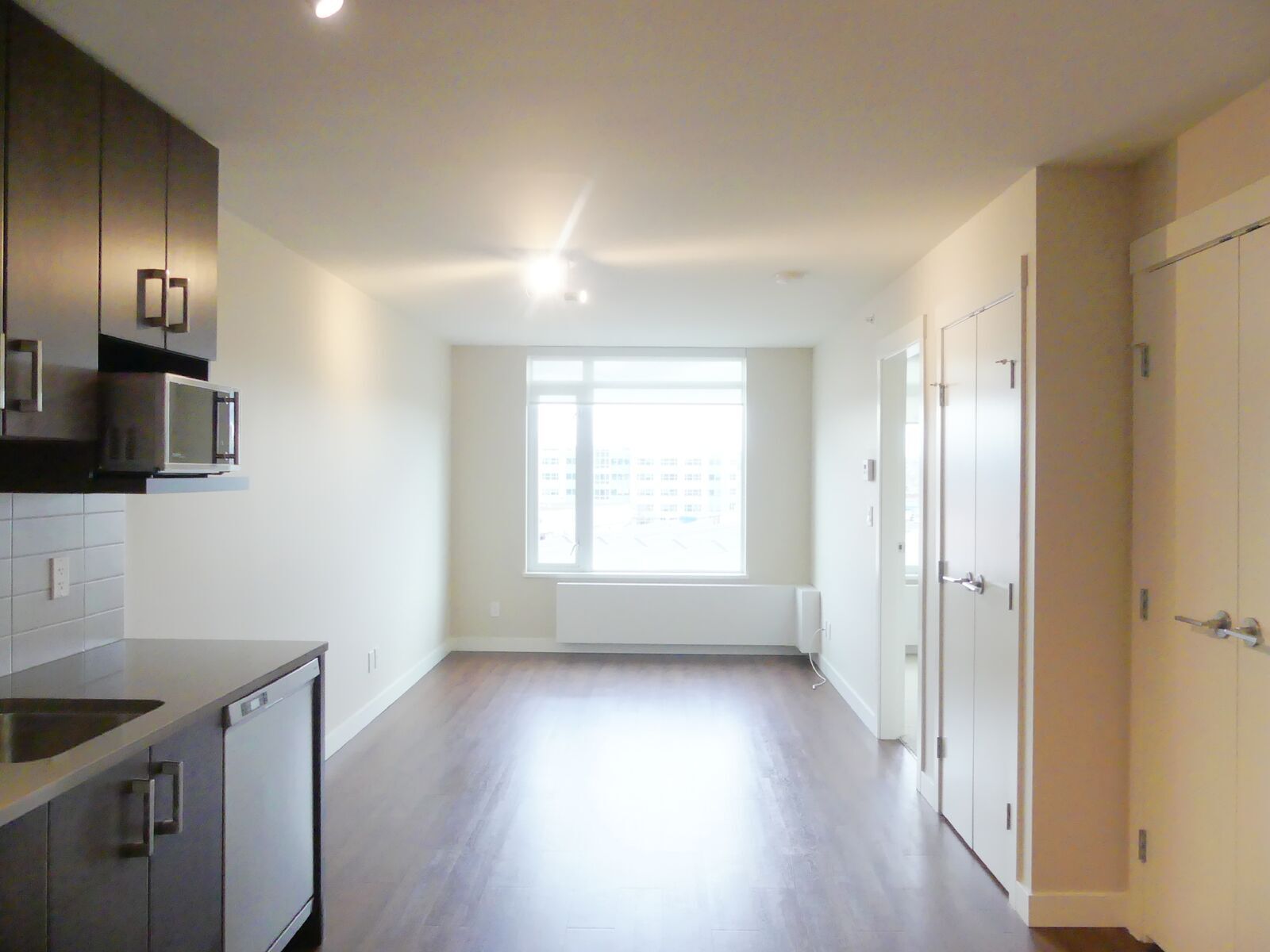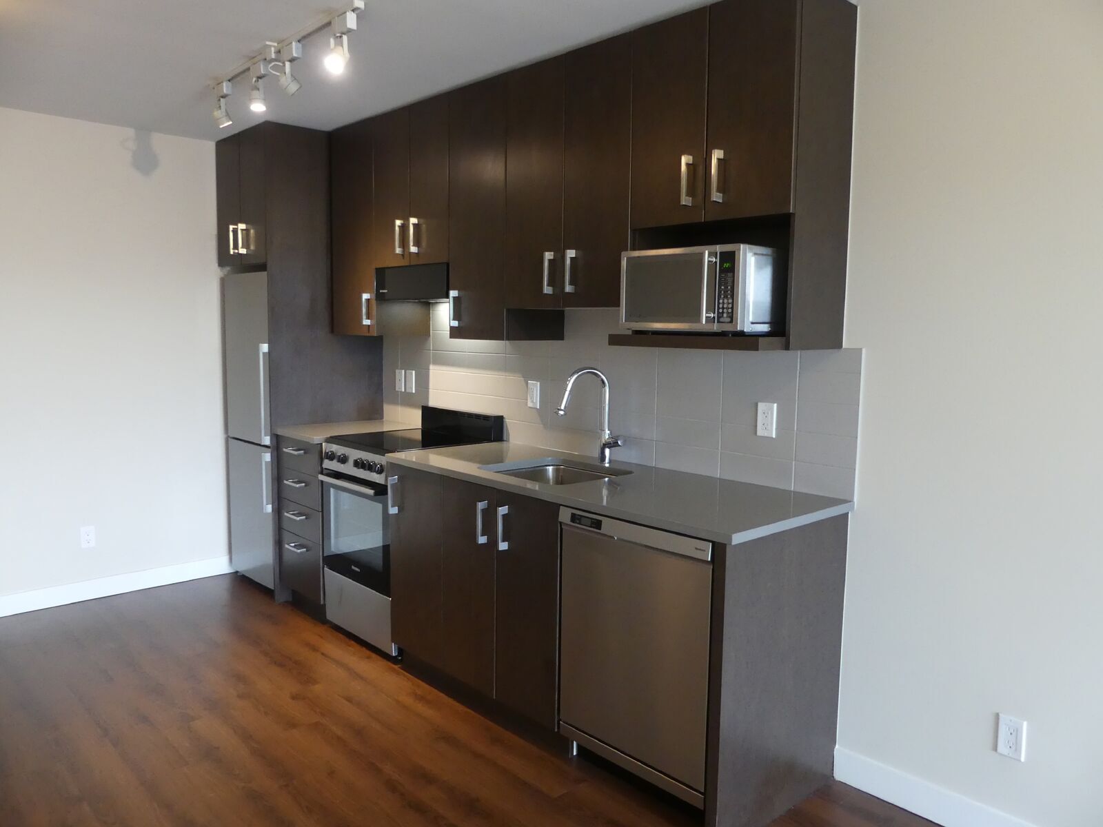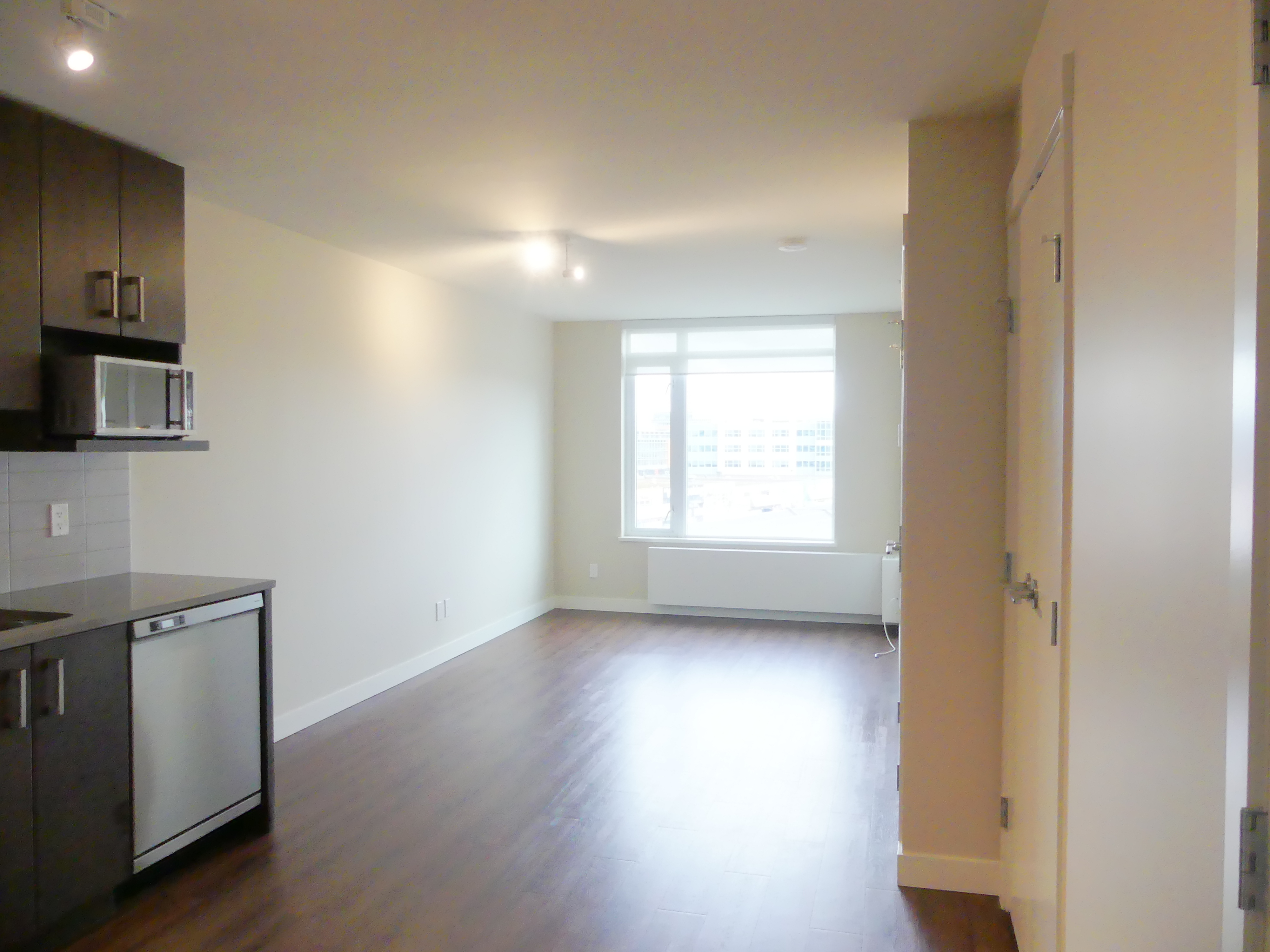 Our C plan is 516sqft of open concept living. A walk-in closet and plenty of storage makes this home a functional, and flexible space. A galley kitchen lines the wall and helps save space. A full, stainless-steel appliance package is completed with a dishwasher and microwave. This home is finished with low-flow faucets, LED lights and other amazing eco-friendly solutions, meaning you can feel good about reducing your carbon footprint.