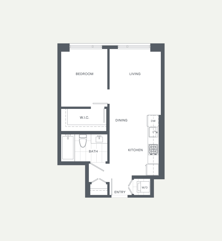 The B plan is 508sqft of functional space. The large bedroom features plush carpet and a huge walk-in closet, perfect for those who value storage. Located on the east side, this suite faces Main Street. A galley kitchen features stainless-steel appliances including a dishwasher & microwave. This home is finished with low-flow faucets, LED lights and other amazing eco-friendly solutions, meaning you can feel good about reducing your carbon footprint.