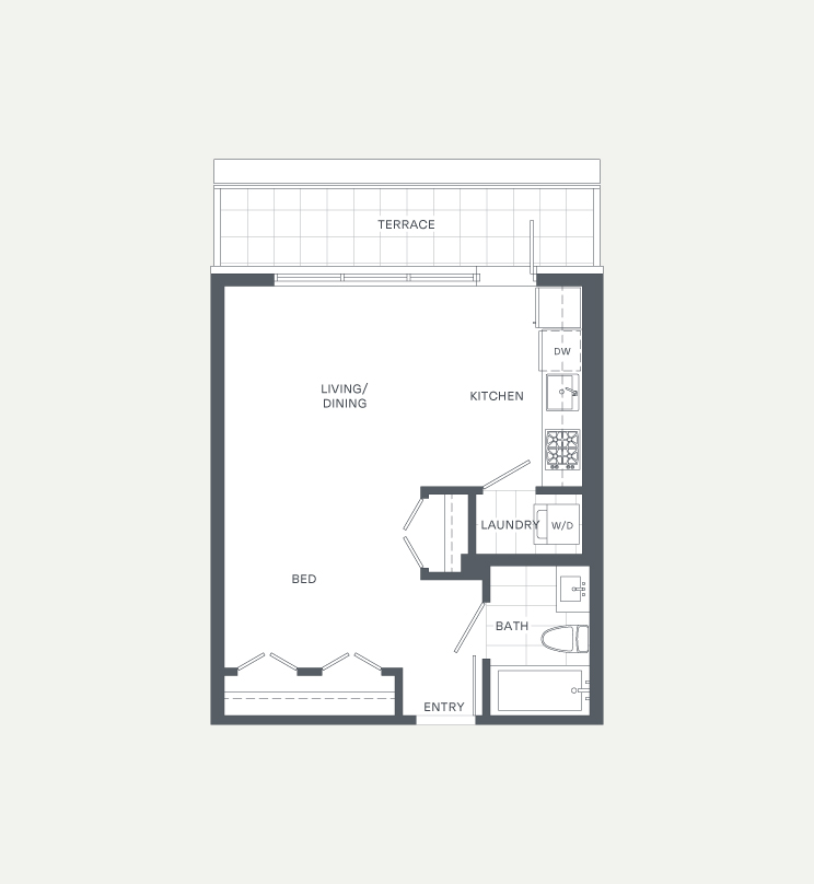 Unique to the top floor, our K plan offers 100sqft of outdoor space. This terrace faces east, and offers unobstructed views of False creek flats. This expert layout is 432sqft of functional space. With three large closets, and a separate laundry room, this studio makes organization easy. A galley kitchen features stainless-steel appliances including a dishwasher & microwave. This home is finished with low-flow faucets, LED lights and other amazing eco-friendly solutions, meaning you can feel good about reducing your carbon footprint.