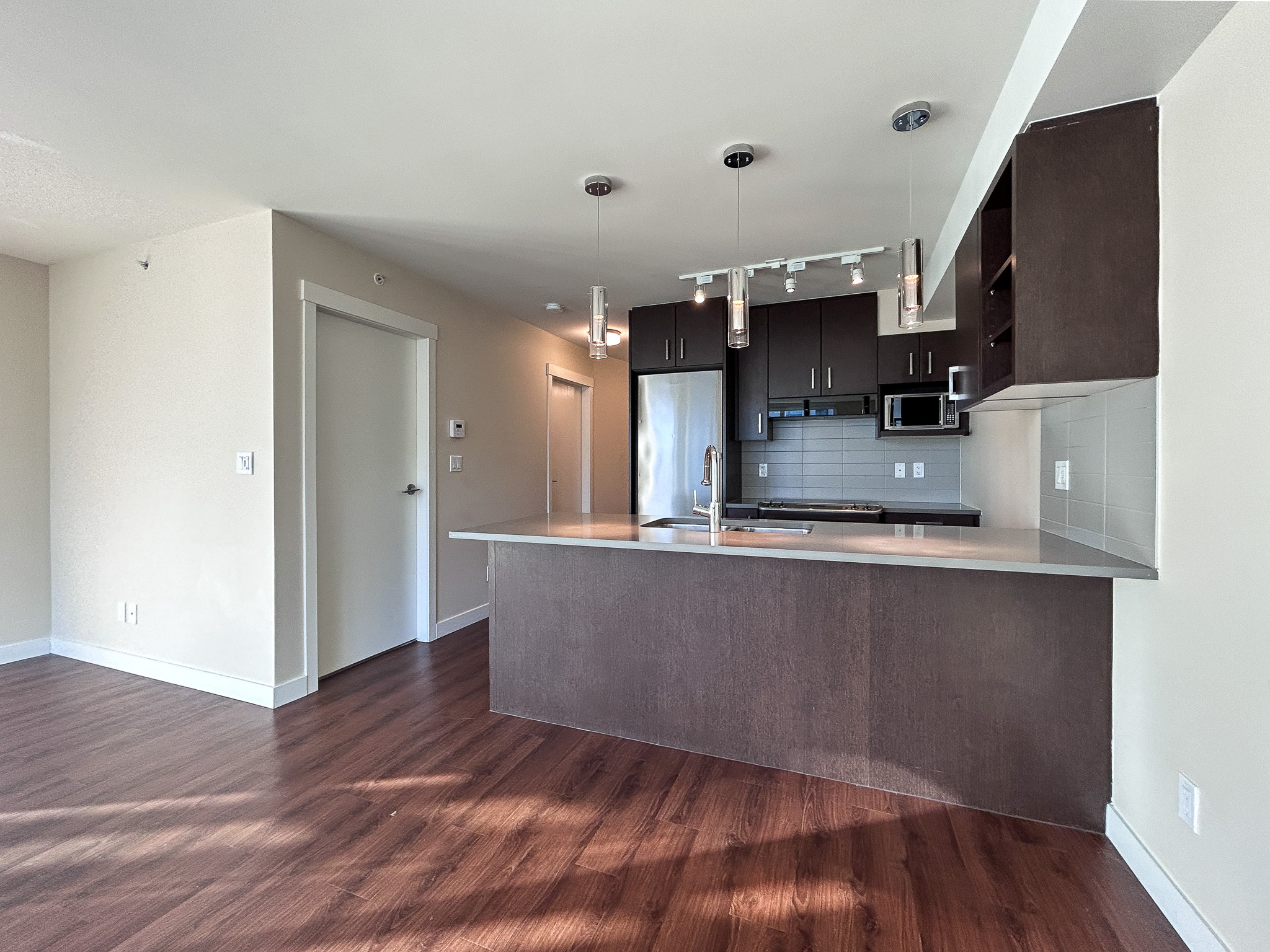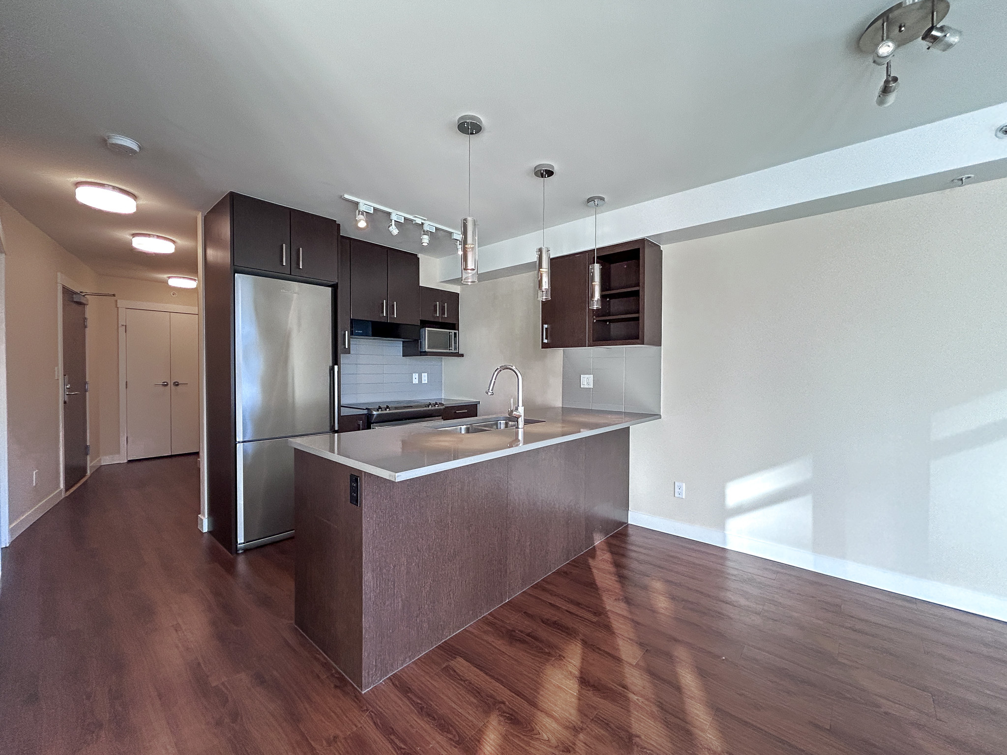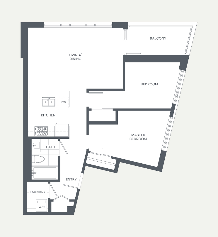 Our H plan is an 800sqft suite on the north west corner. This unique plan offers a private balcony, with a quiet view, away from the busy street. A separate laundry room helps keep all of your cleaning in one place. Large windows let in plenty of natural light, which is guaranteed to illuminate the space year-round. The kitchen features an island which doubles as a casual breakfast bar, and provides plenty of counter top and cupboard storage. This home is finished with low-flow faucets, LED lights and other amazing eco-friendly solutions, meaning you can feel good about reducing your carbon footprint.