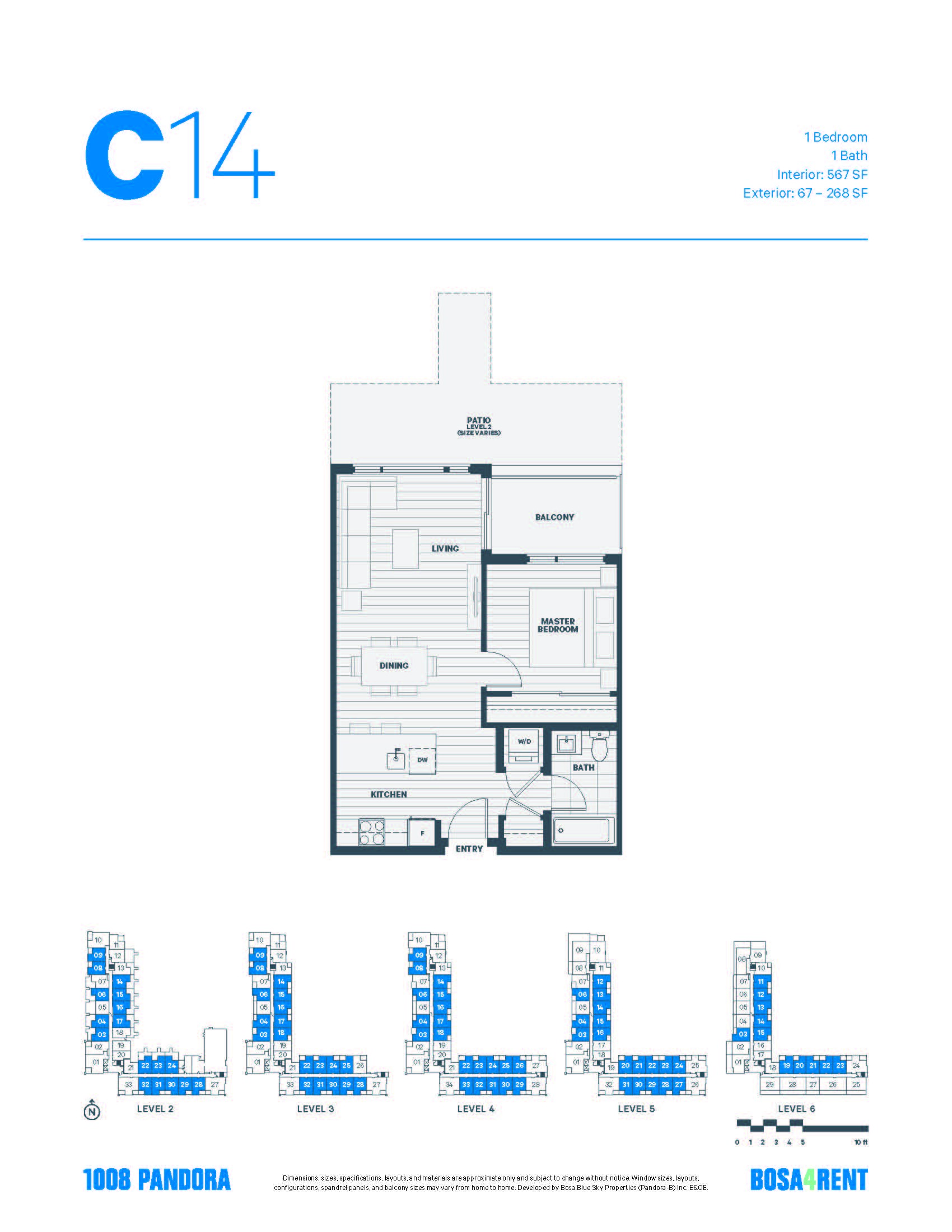 Our C14 plan is our most efficient floor plan. This home offers a great, open concept layout that is guaranteed to fit and flex to your needs. With options on all levels and exposures, this home provides many options. With a deep balcony, and large windows, this home offers great views.