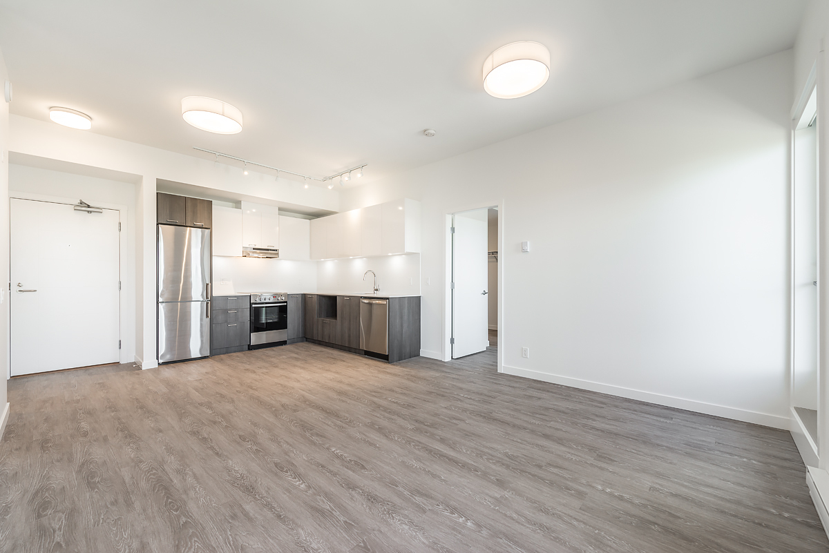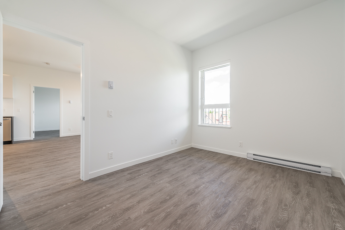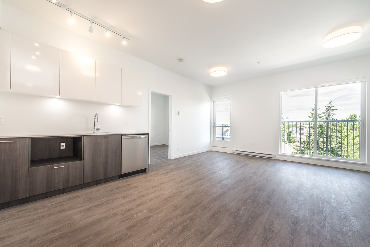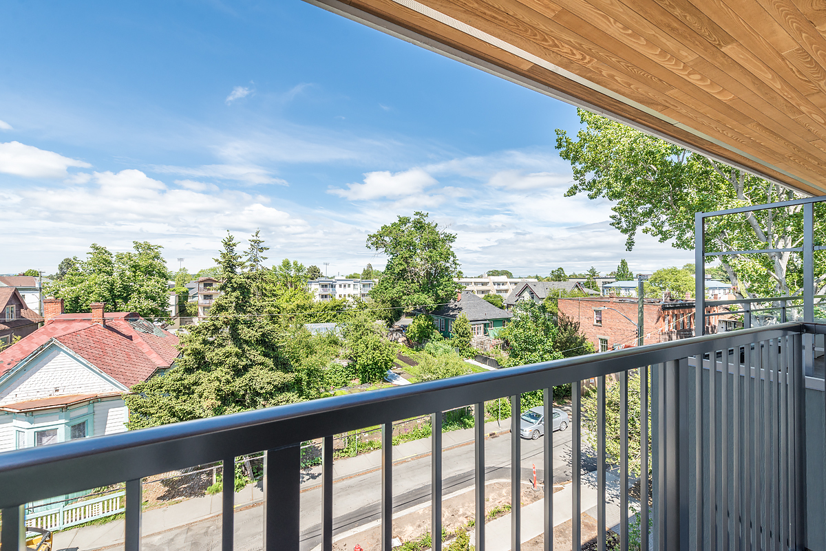 Our D6 plan is one of a kind. With rooms on opposing sides, two bathrooms, and two balconies this space makes the perfect home those looking for space and privacy. The large balconies look north over the quiet Mason street, and offers peace and quiet. This corner suite features a large kitchen island to create a breakfast bar, and maximizes countertop space. A full stainless-steel appliance package finishes this quality kitchen. Enjoy the comfort of in-suite laundry, deep soaker tubs, and great walk-in closets.