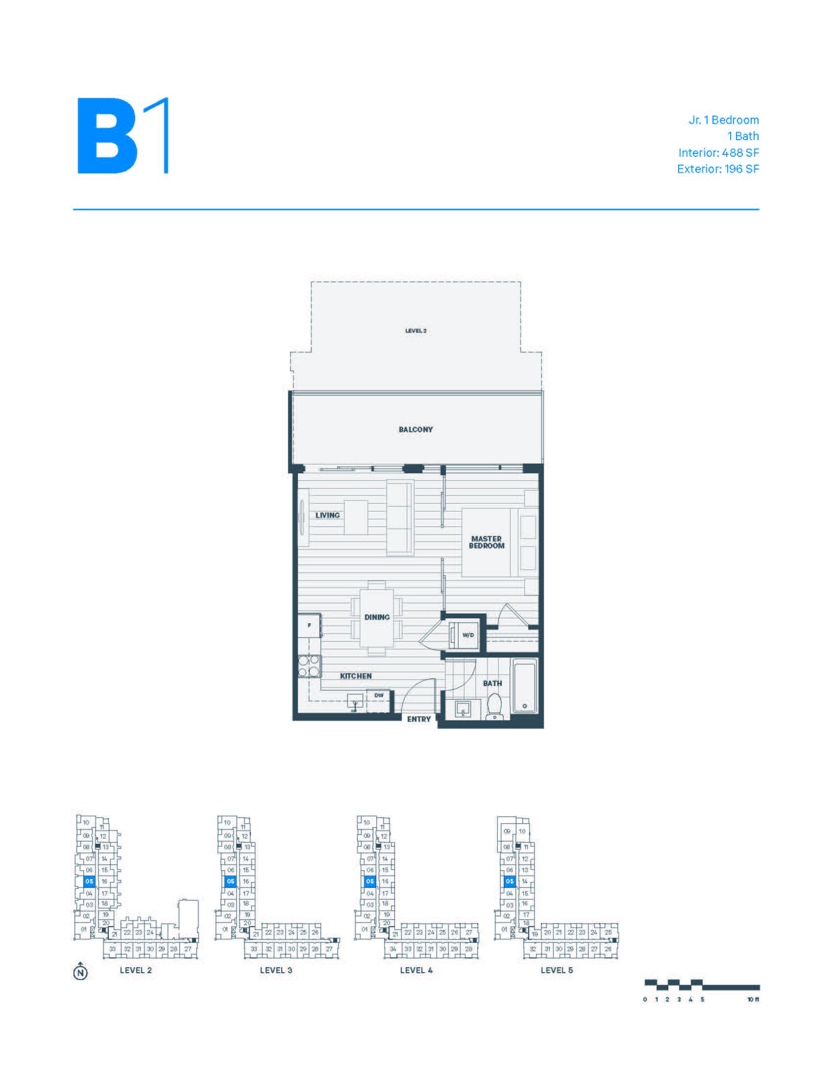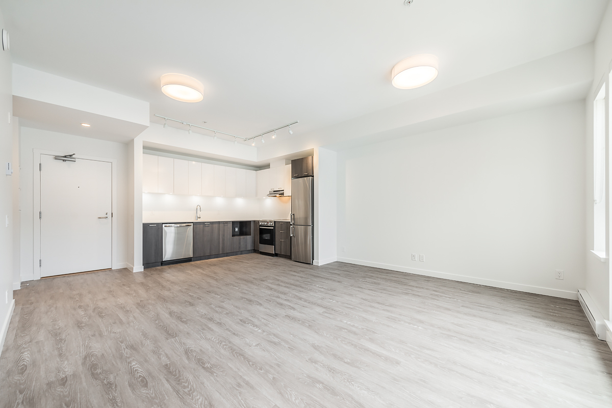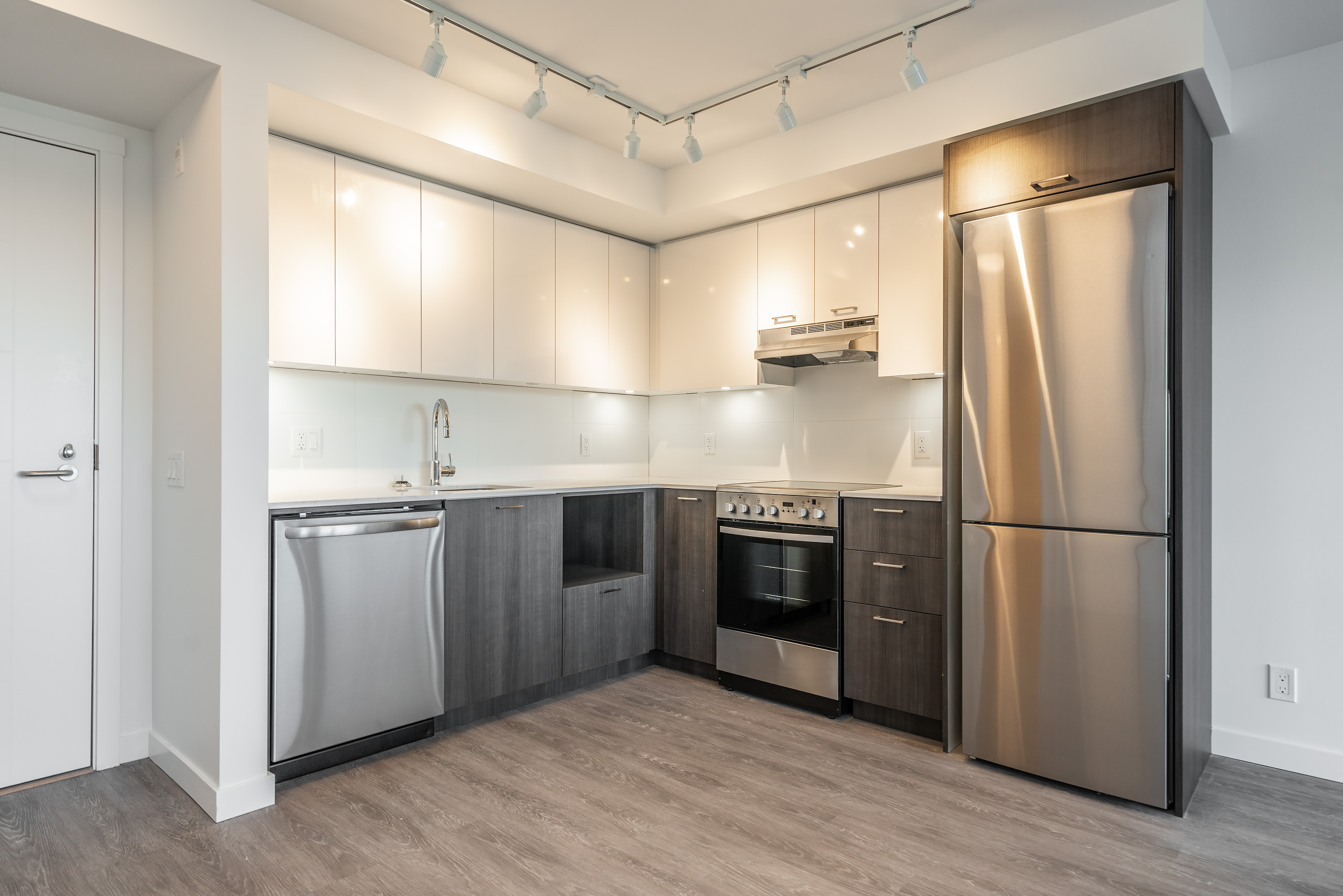 Our Jr 1-bedroom plan provides the flexibility of a studio and the privacy of a one bedroom. Sliding glass panels can shift the dynamics of the space and creates a convertible yet functional home. The 488sqft home features a large, western facing balcony, and a terrace on the 2nd floor which looks over the vibrant Vancouver Street. Condo-quality finishes such as in-suite laundry, stainless-steel appliances, and quartz counters complete this great package.