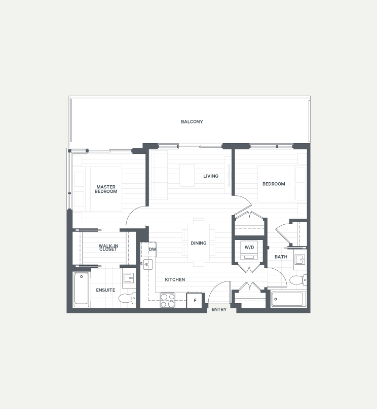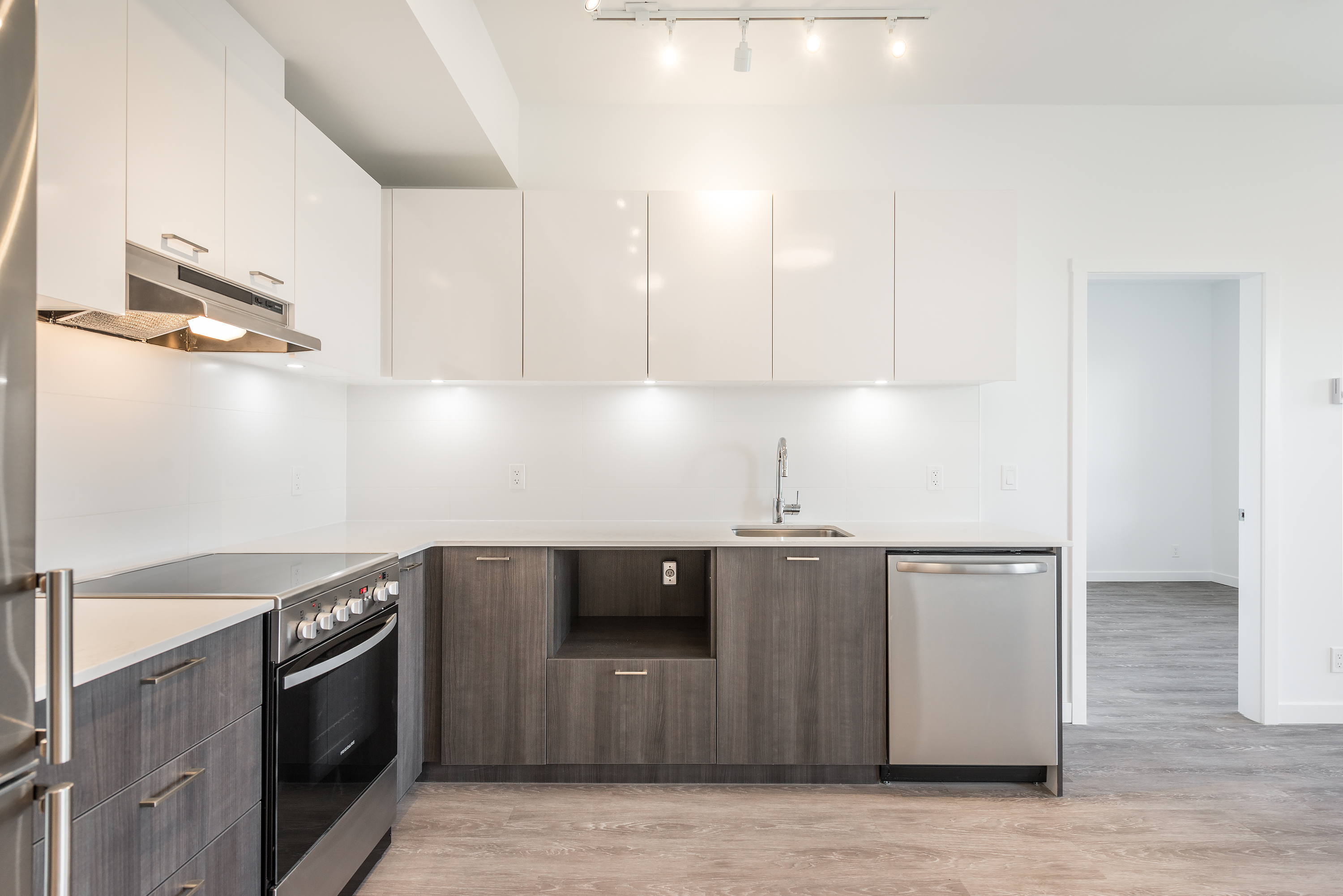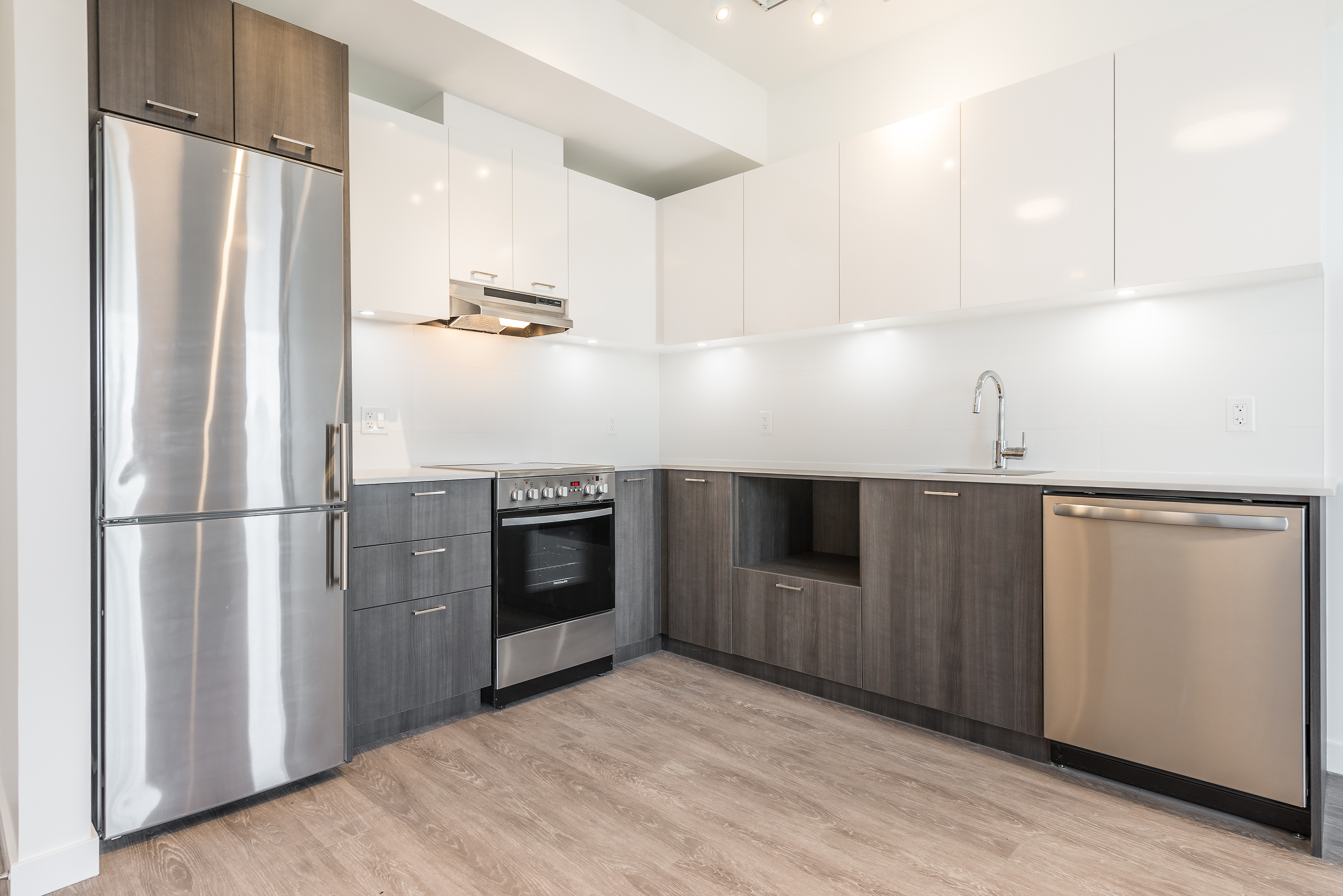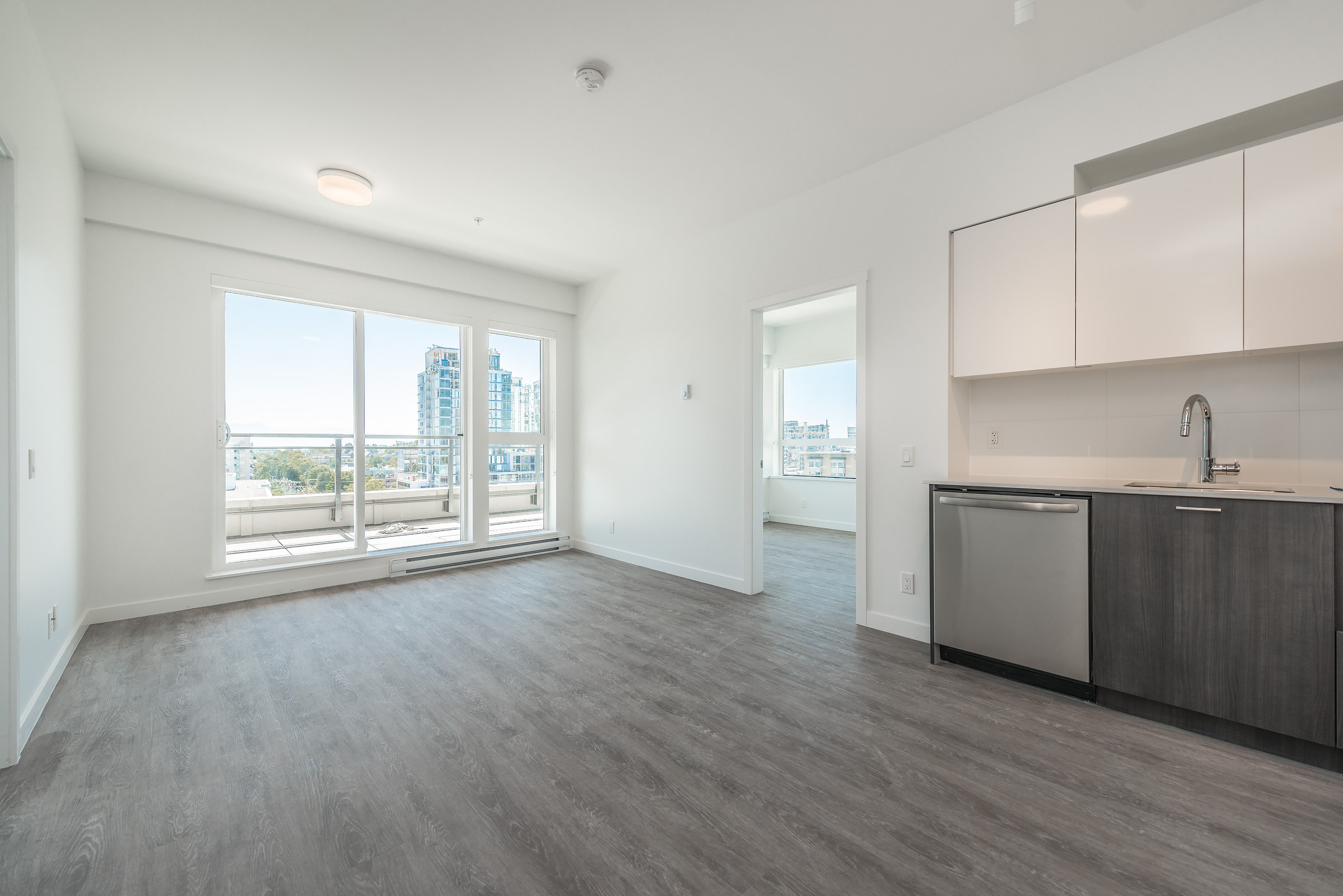 Unique to the top floor, our D1 plan is expertly laid out. With rooms on opposing sides, and two bathrooms, this space makes the perfect home those looking for privacy. The large, 234sqft terrace looks south over Pandora street, and offers great views. This corner suite features an L-shaped kitchen to maximize countertop space. A full stainless-steel appliance package finishes this quality kitchen. Enjoy the comfort of in-suite laundry, deep soaker tubs, and great walk-in closets.