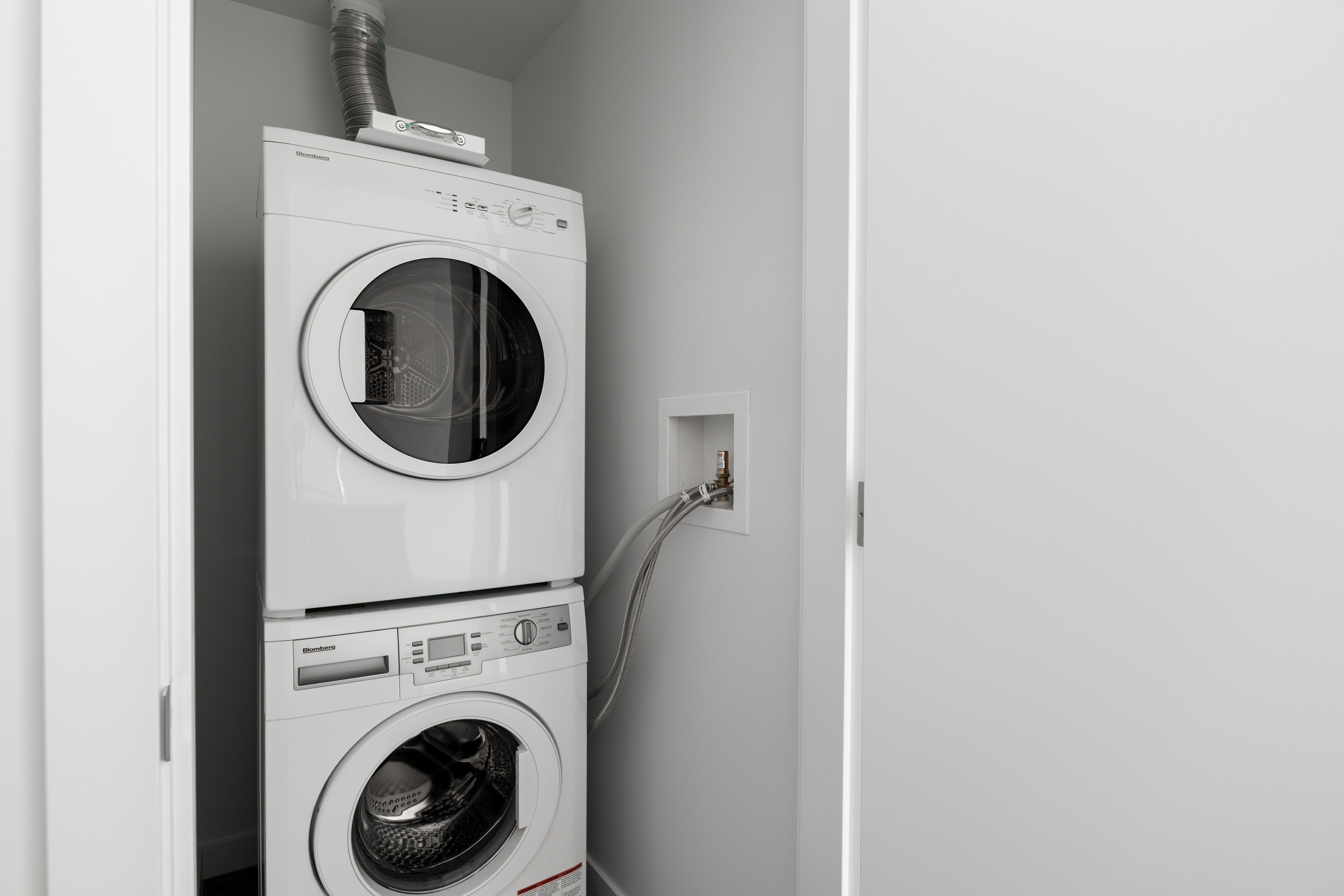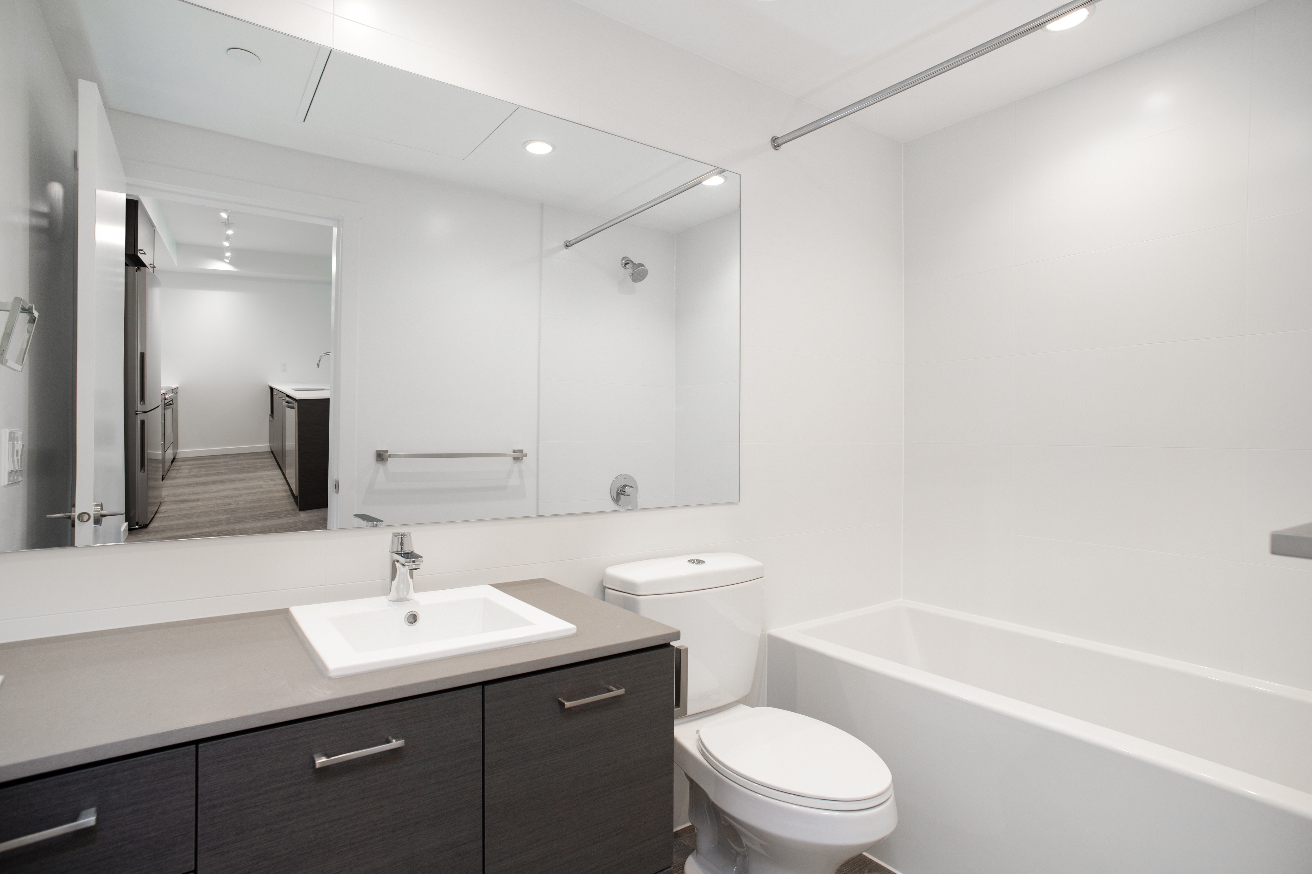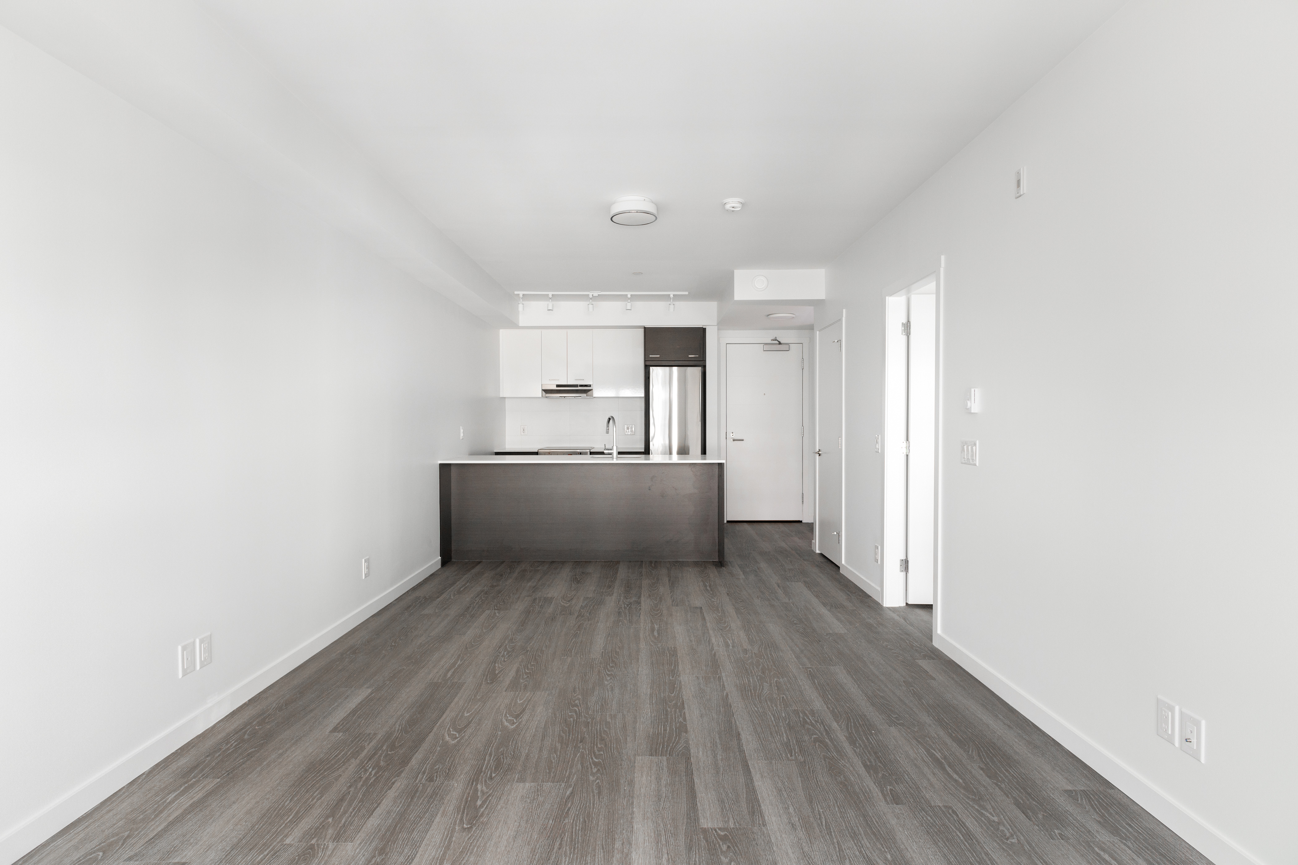 Our C1 plan is 561sqft and features a gorgeous Western exposure, with quaint views overlooking our resident’s courtyard. The large kitchen island doubles as a breakfast bar and is topped with beautiful quartz counters. Modern and efficient finishes include low-energy, stainless-steel appliances, low-flow faucets and in-suite laundry. High-quality vinyl plank floors fill the suite for a clean and modern finish.