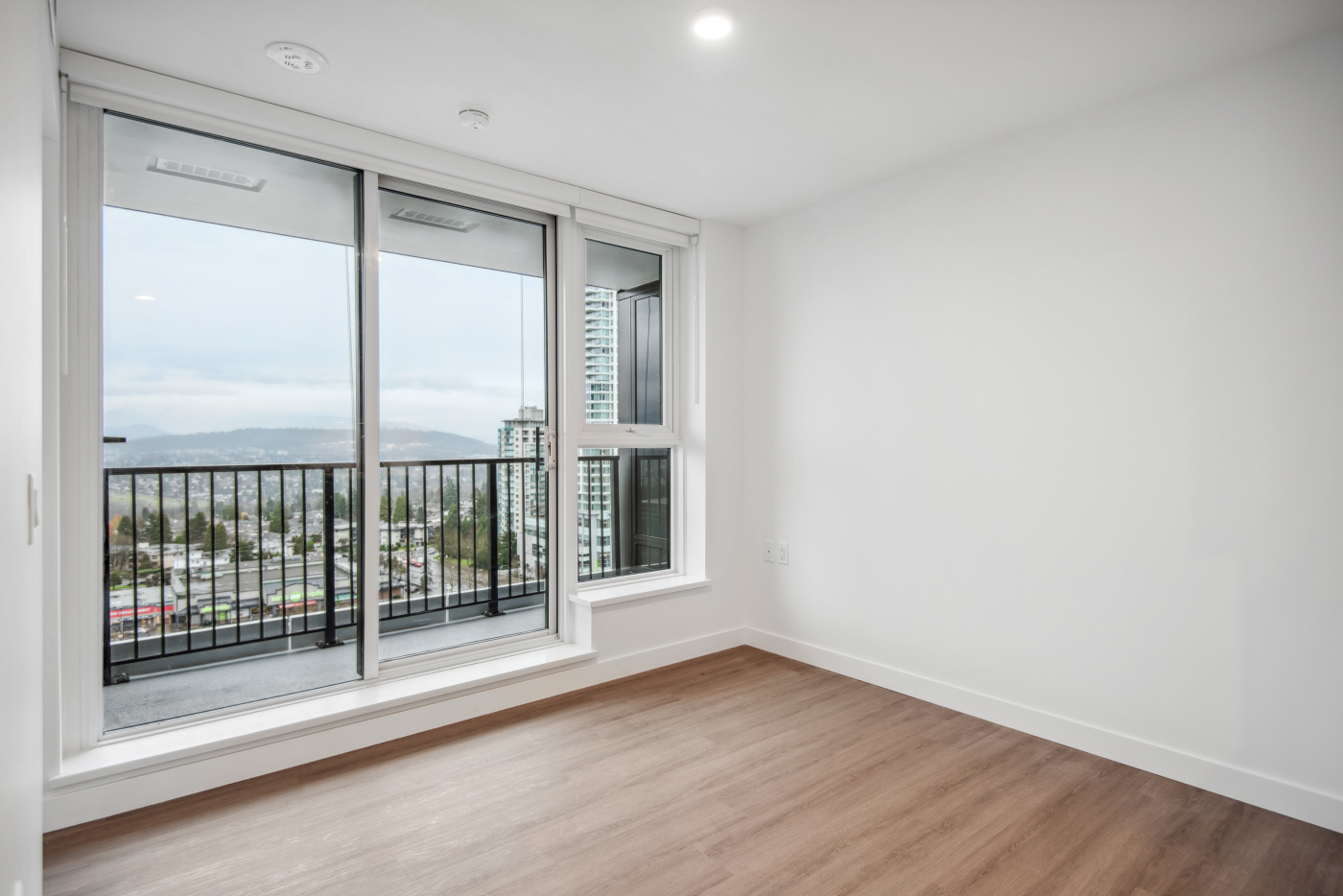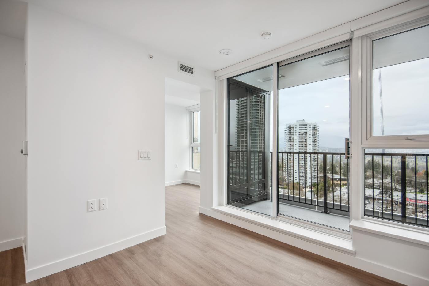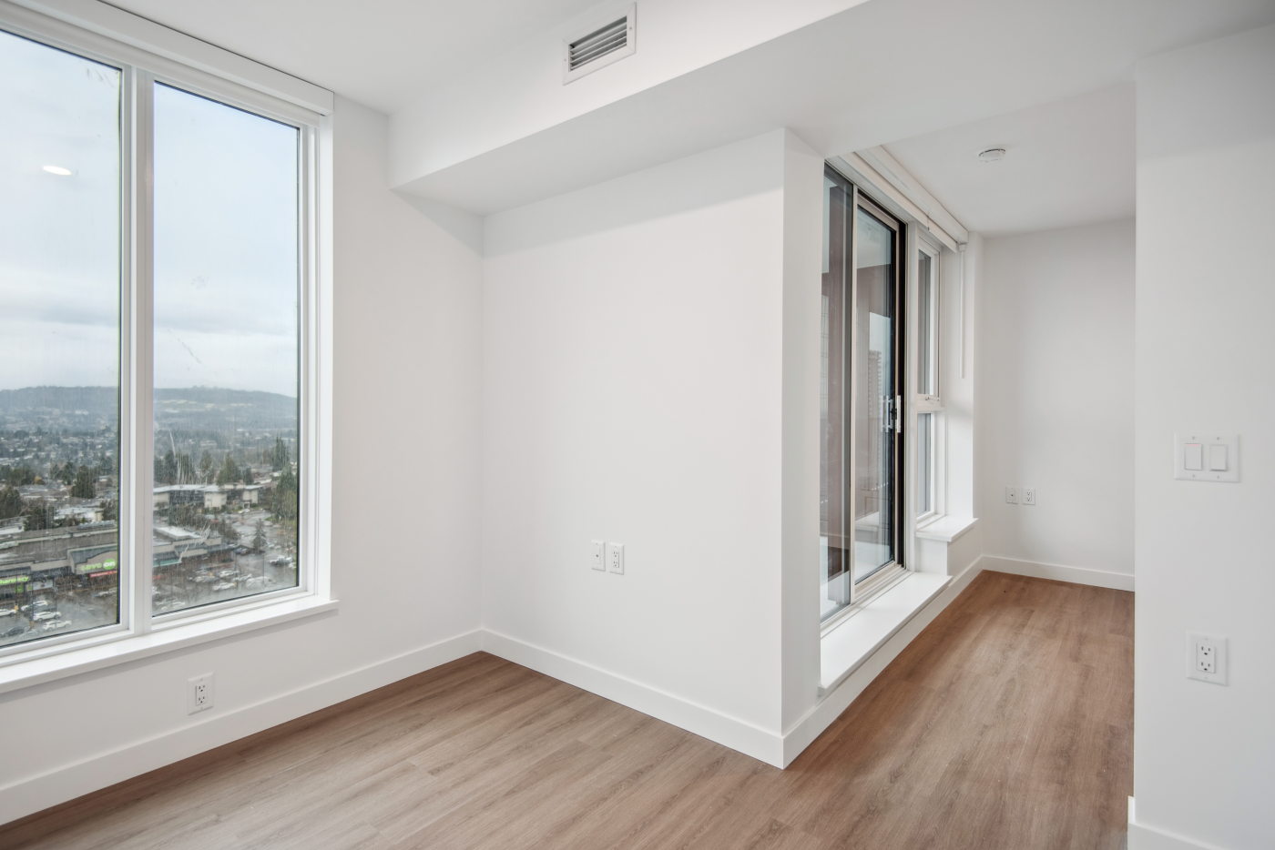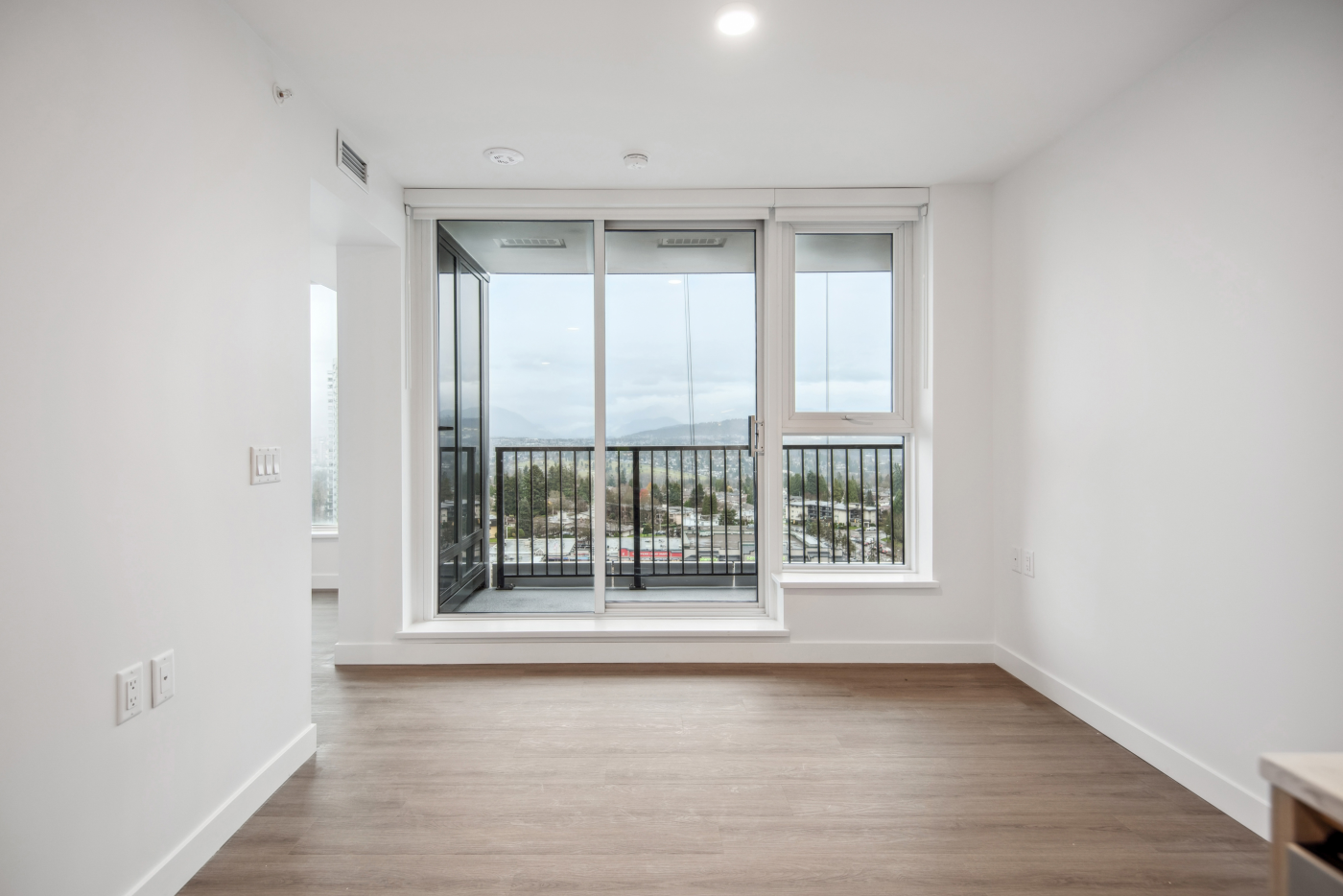 A functional junior one-bedroom with a defined sleeping area. Situated on levels 13-24, the plan is oriented to maximize functionality, with a pantry for extra storage, and an efficient flow from the entry through the living area and balcony.