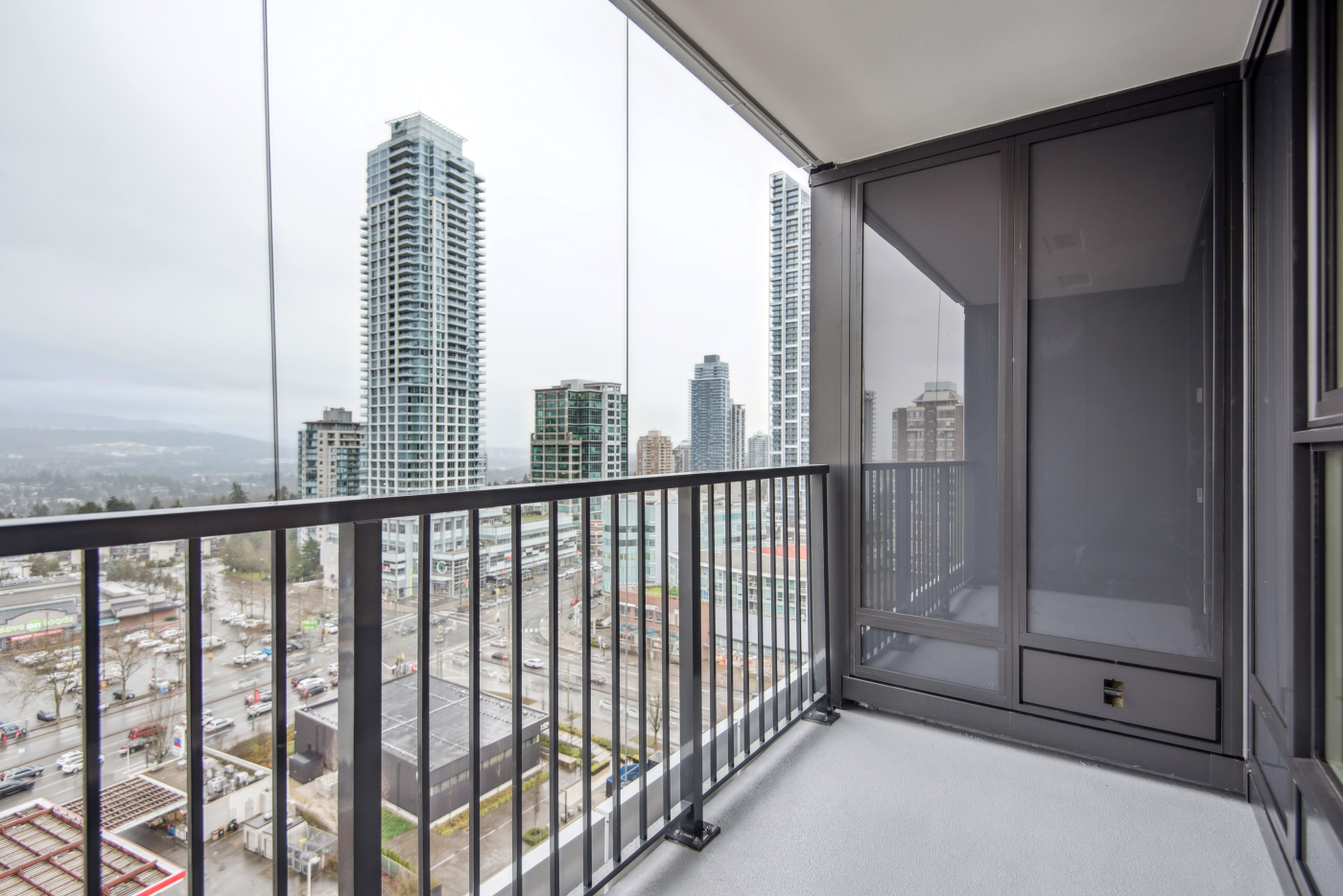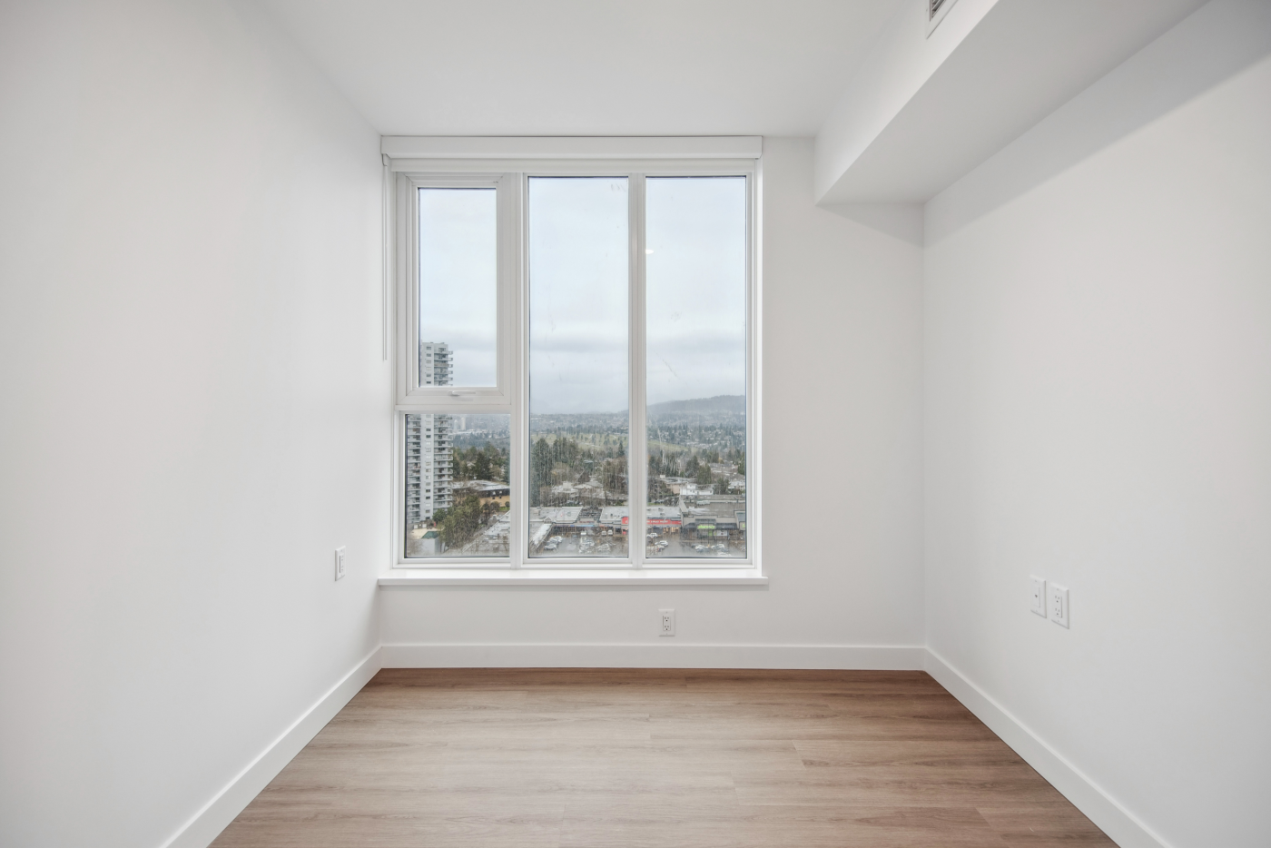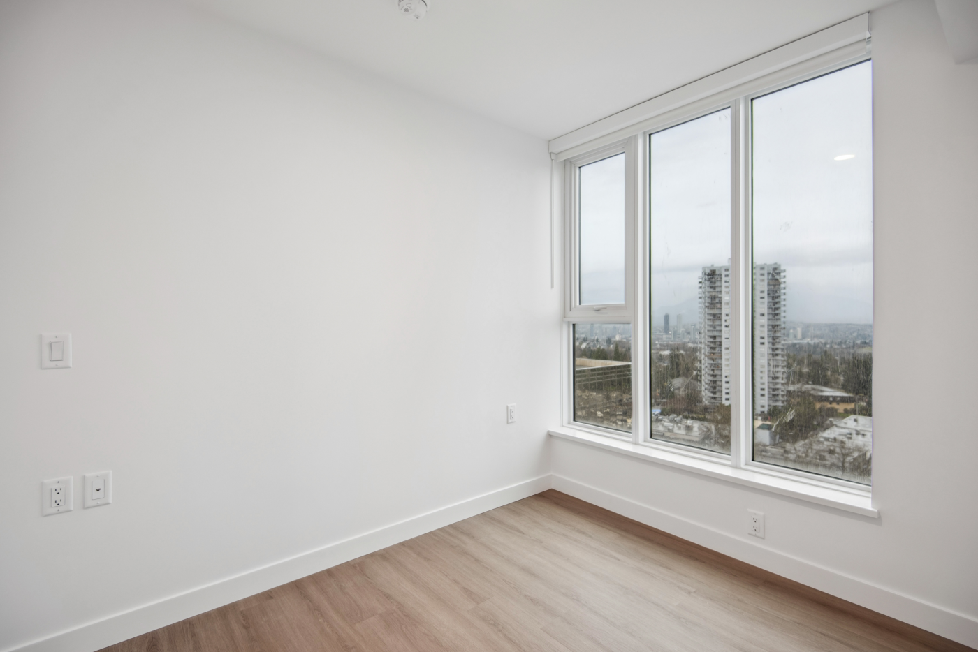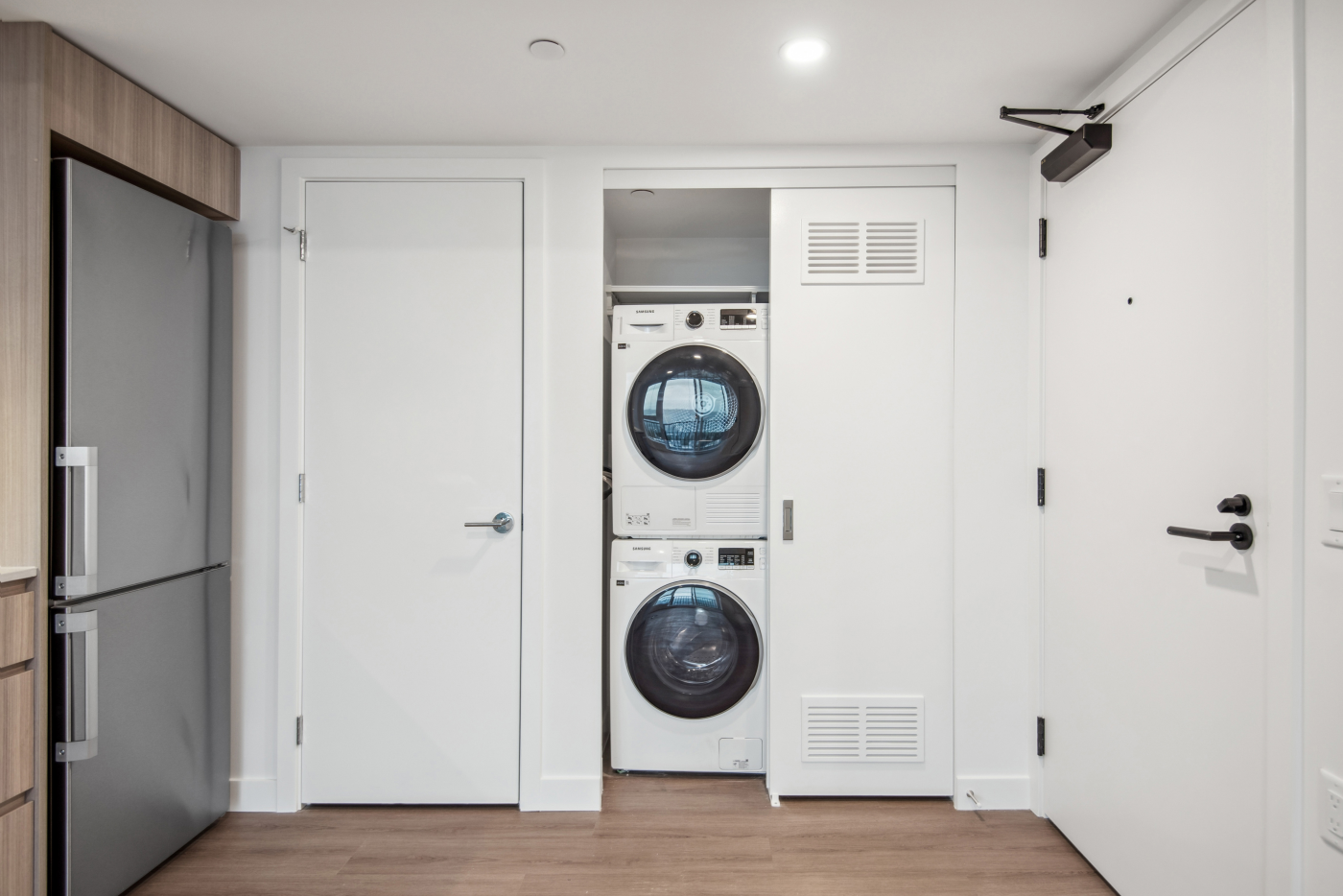 A functional junior one-bedroom with a defined sleeping area. Situated on levels 13-24, the plan is oriented to maximize functionality, with a pantry for extra storage, and an efficient flow from the entry through the living area and balcony.