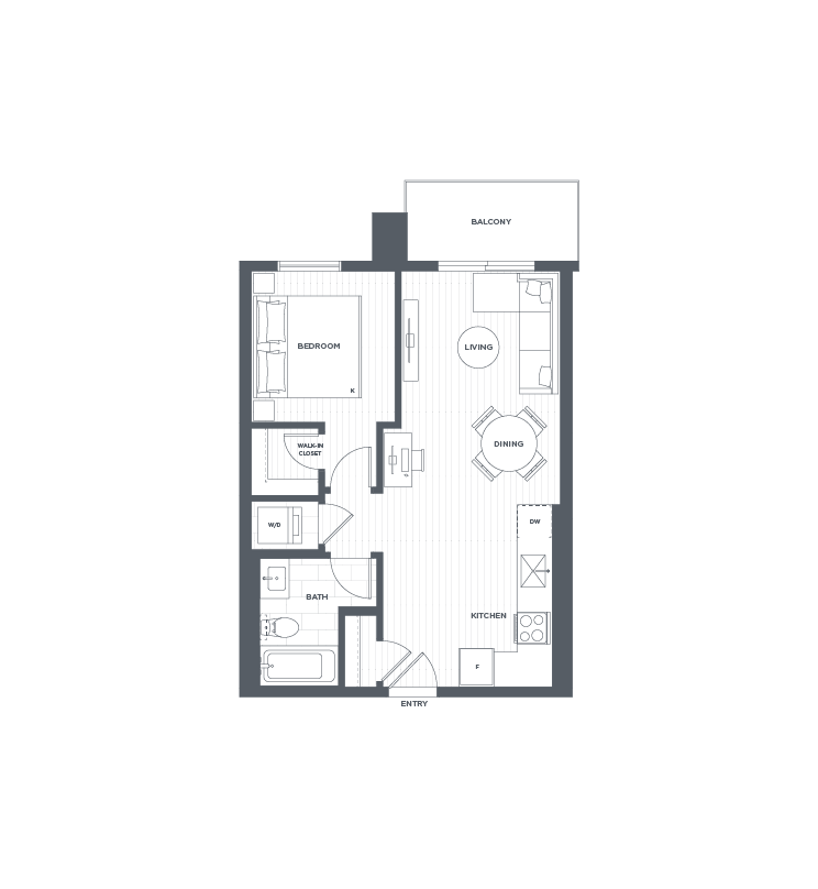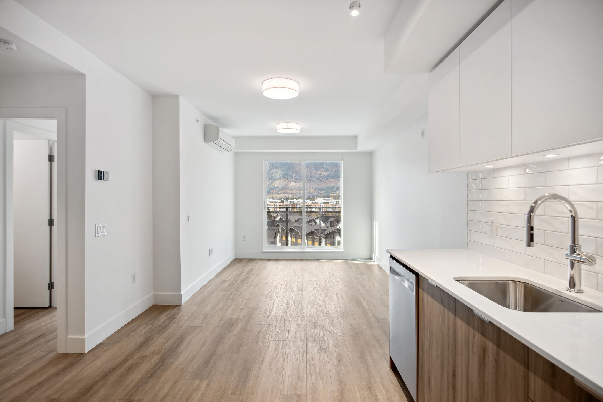 A thoughtfully designed one-bedroom home that balances comfort and functionality. The bright living and dining area features large windows that showcase mountain views throughout the day. A spacious bedroom with walk-in closet, full kitchen, modern appliances, in-suite laundry, and air conditioning make this home feel complete.
