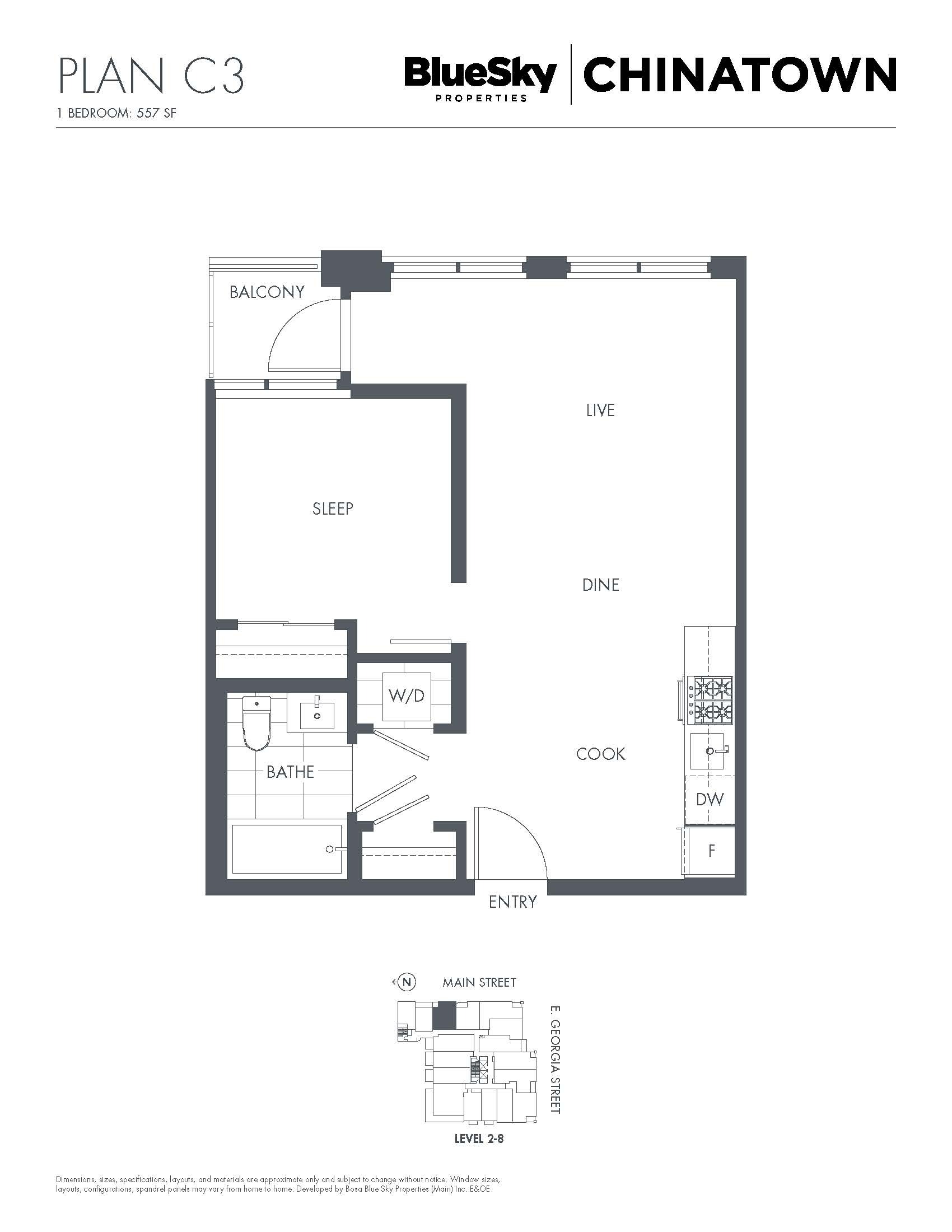 BLUESKY offers accessibility to many of the city’s most celebrated restaurants, bars, shops, and services, all within walking distance. At the foot of the building is Dalina Café, a local shop offering coffee, food options and specialty grocery items to take home. Residents can also enjoy a 2,000 sq foot rooftop terrace, a lounge, fitness studio and even a workshop.