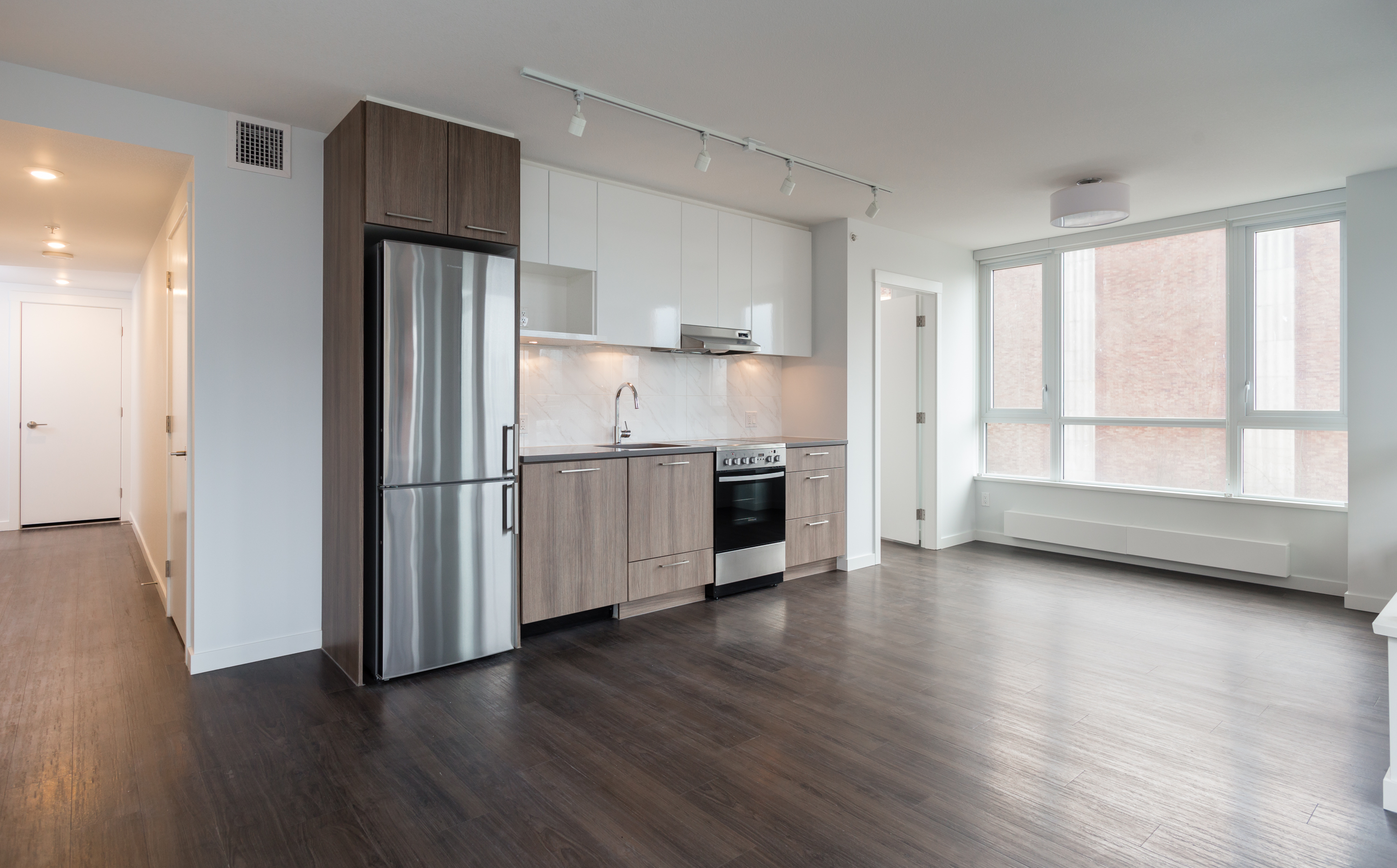 Bright and airy, with maximum view exposure, this is one of only a few of our 1BR suites located on a corner of the building. The suite features modern finishes including: stone countertops, vinyl plank floors and a full appliance package. Relax on your balcony and enjoy the views of False Creek and Downtown Vancouver.