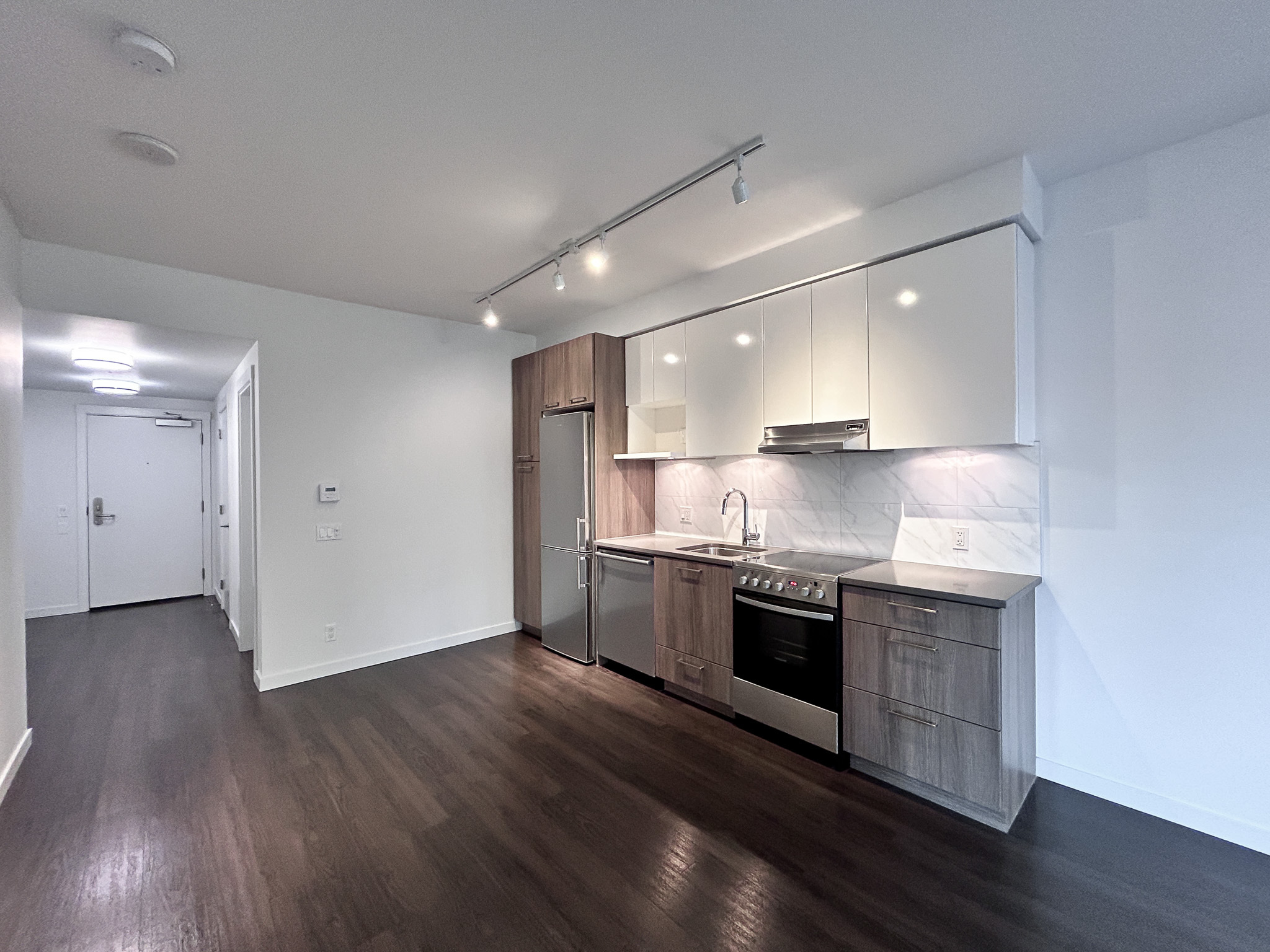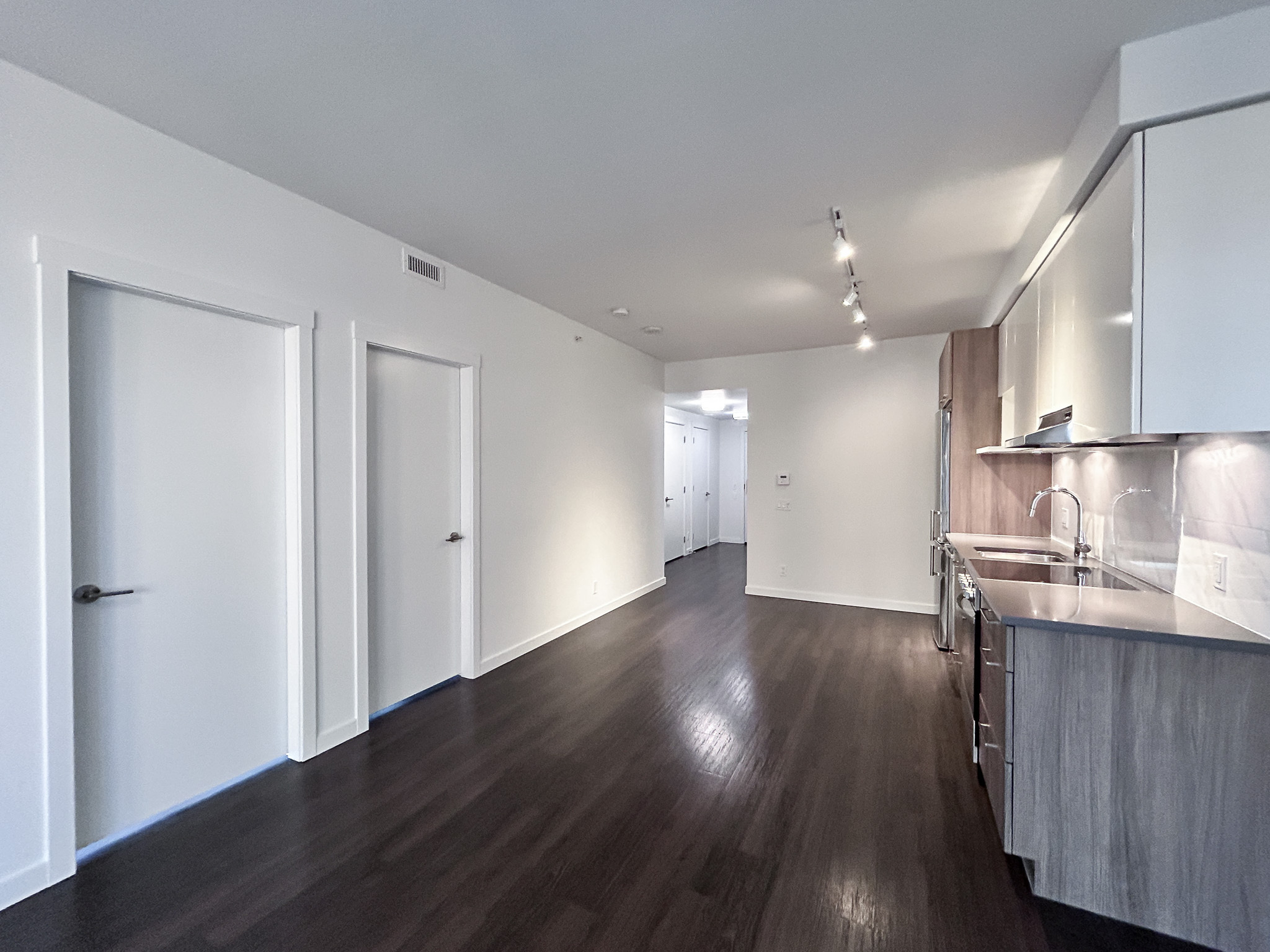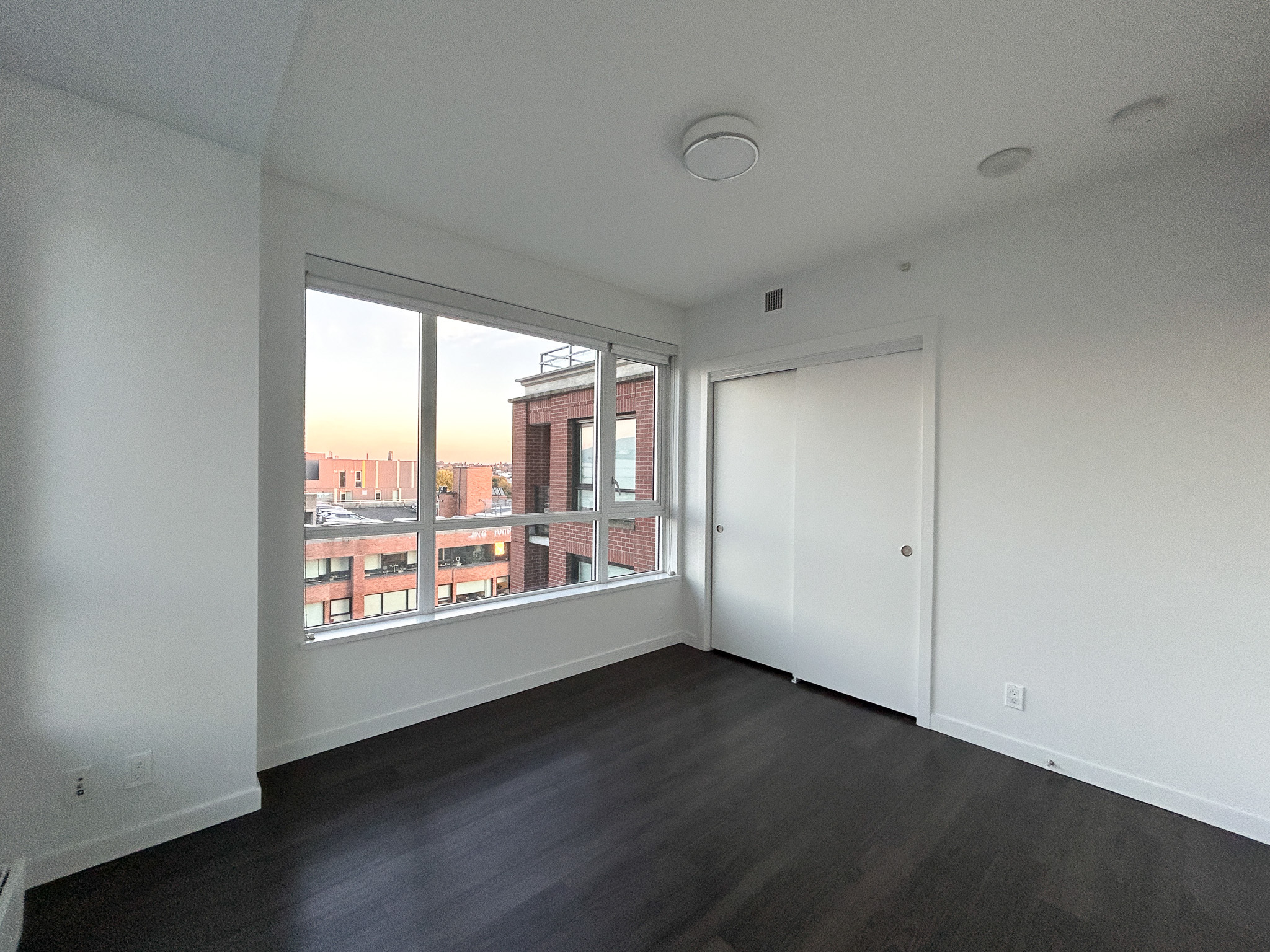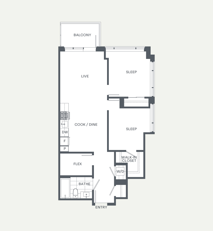 One of only 2 in the building, the D5 layout is located on the north-east corner of the building. Unique aspects of this suite include a walk-in closet in the master bedroom, and a larger flex room than most in the building. The suite features modern finishes including: stone countertops, vinyl plank floors and a full appliance package. Enjoy stunning views of the North Shore mountains and East Vancouver from the balcony.