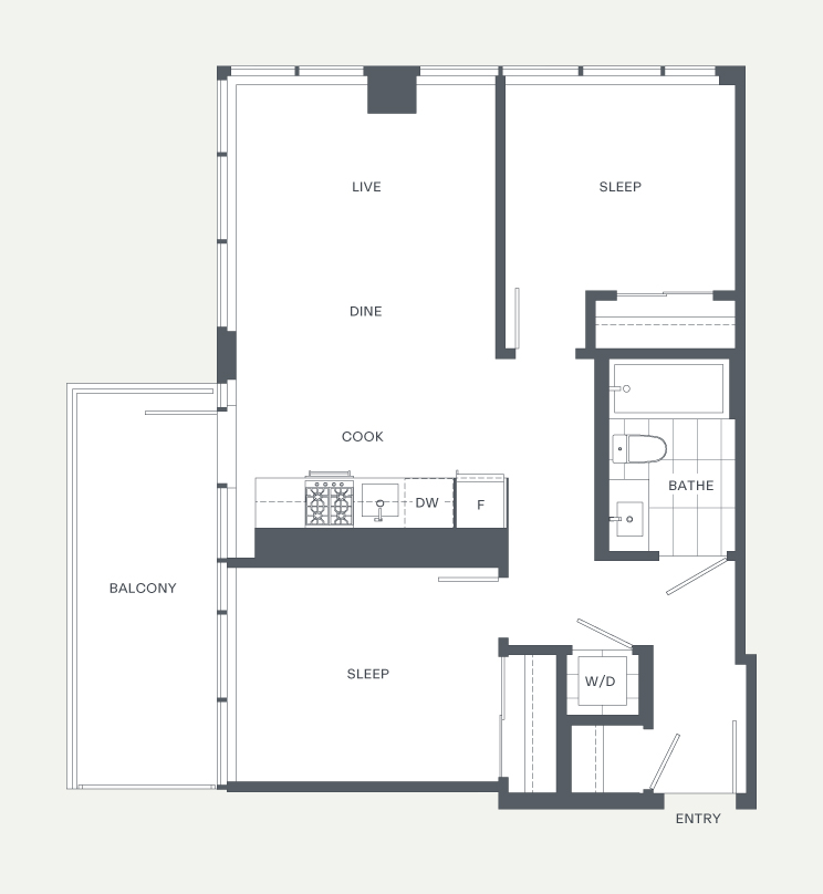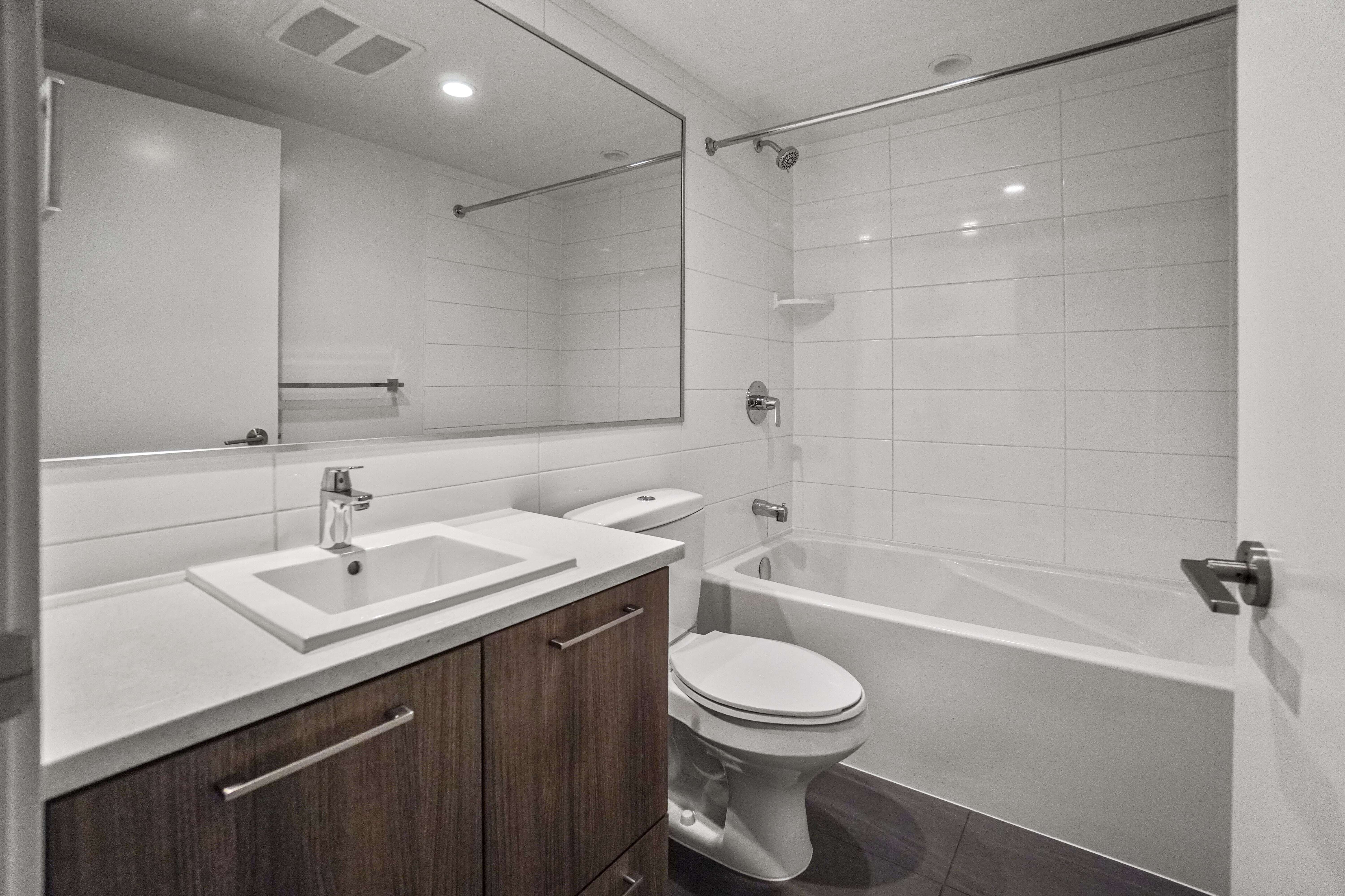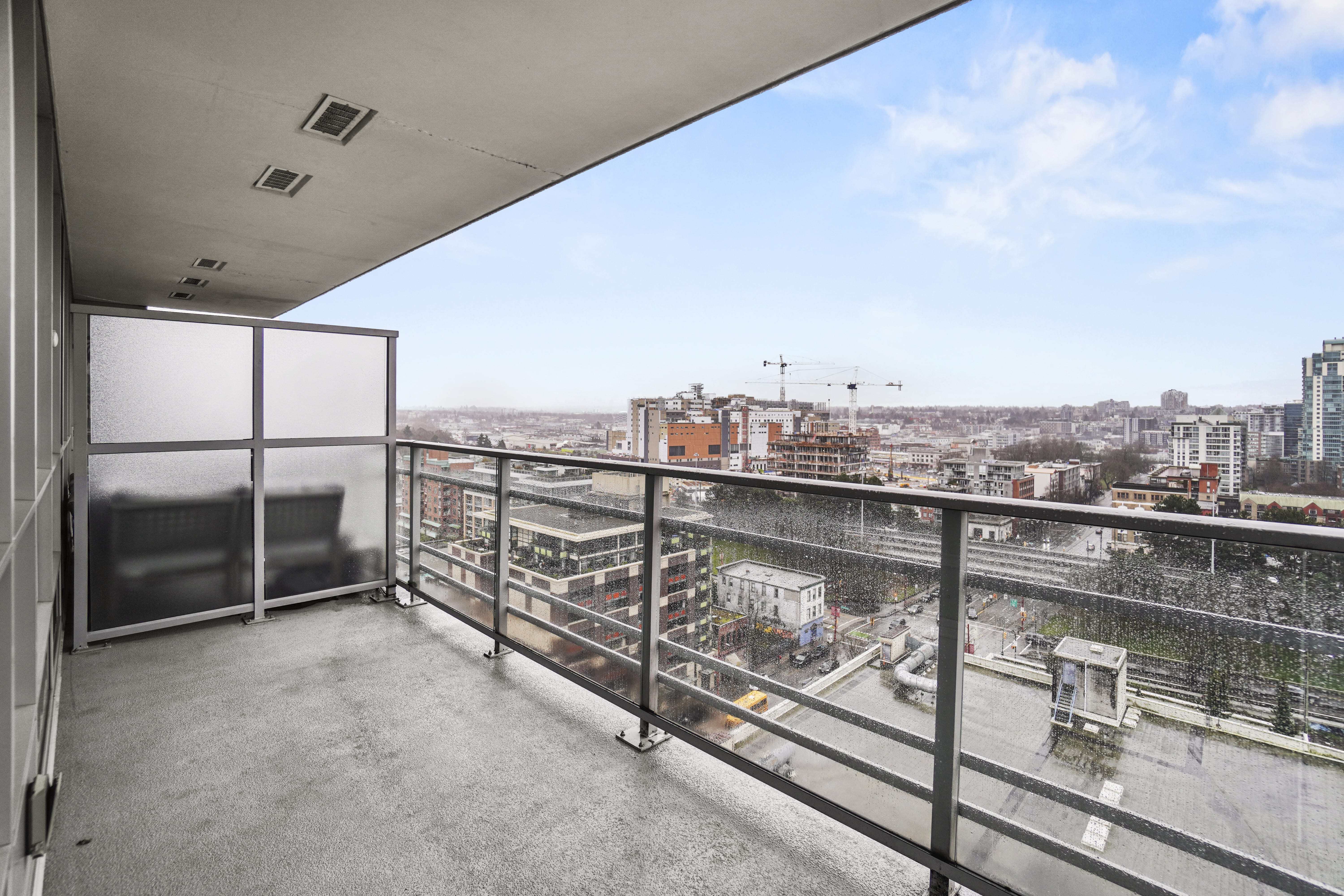 Located on the upper floors of BlueSky Chinatown, this 2BR corner suite features a bright, south-facing balcony with stunning views of False Creek and Downtown Vancouver.