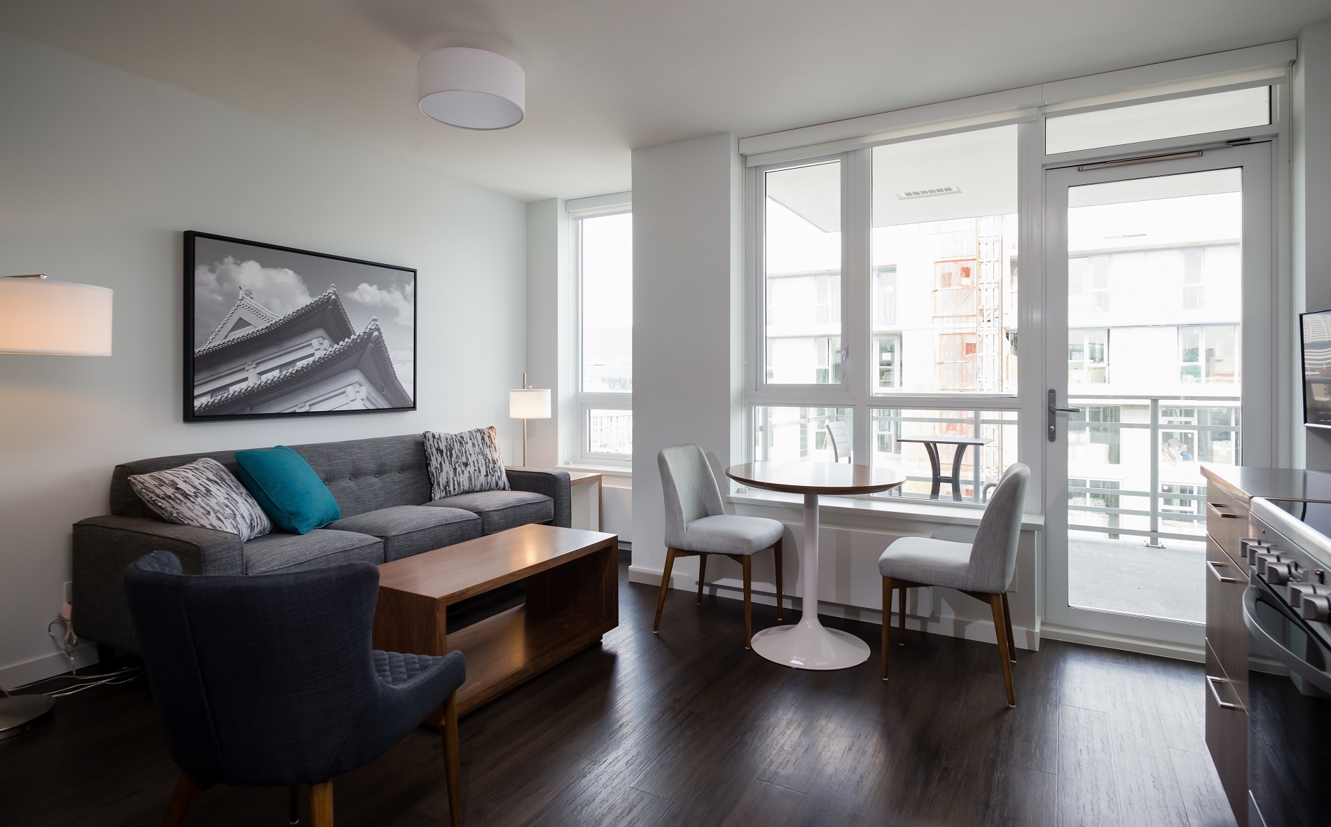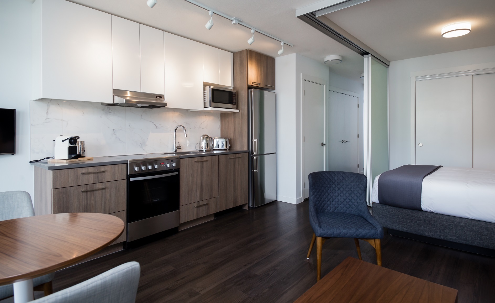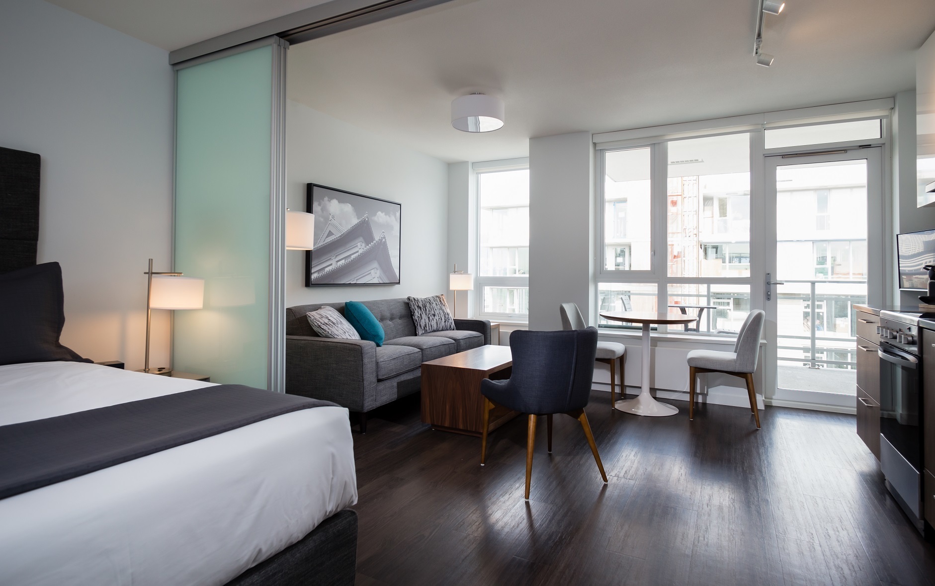 BLUESKY offers accessibility to many of the city’s most celebrated restaurants, bars, shops, and services, all within walking distance. At the foot of the building is Dalina Café, a local shop offering coffee, food options and specialty grocery items to take home. Residents can also enjoy a 2,000 sq foot rooftop terrace, a lounge, fitness studio and even a workshop.