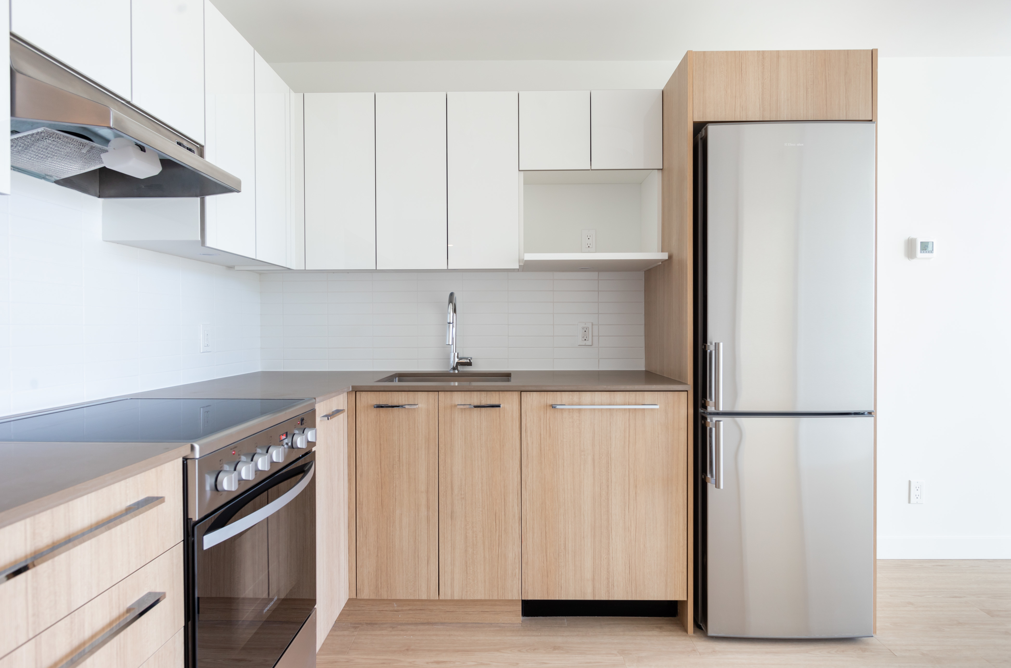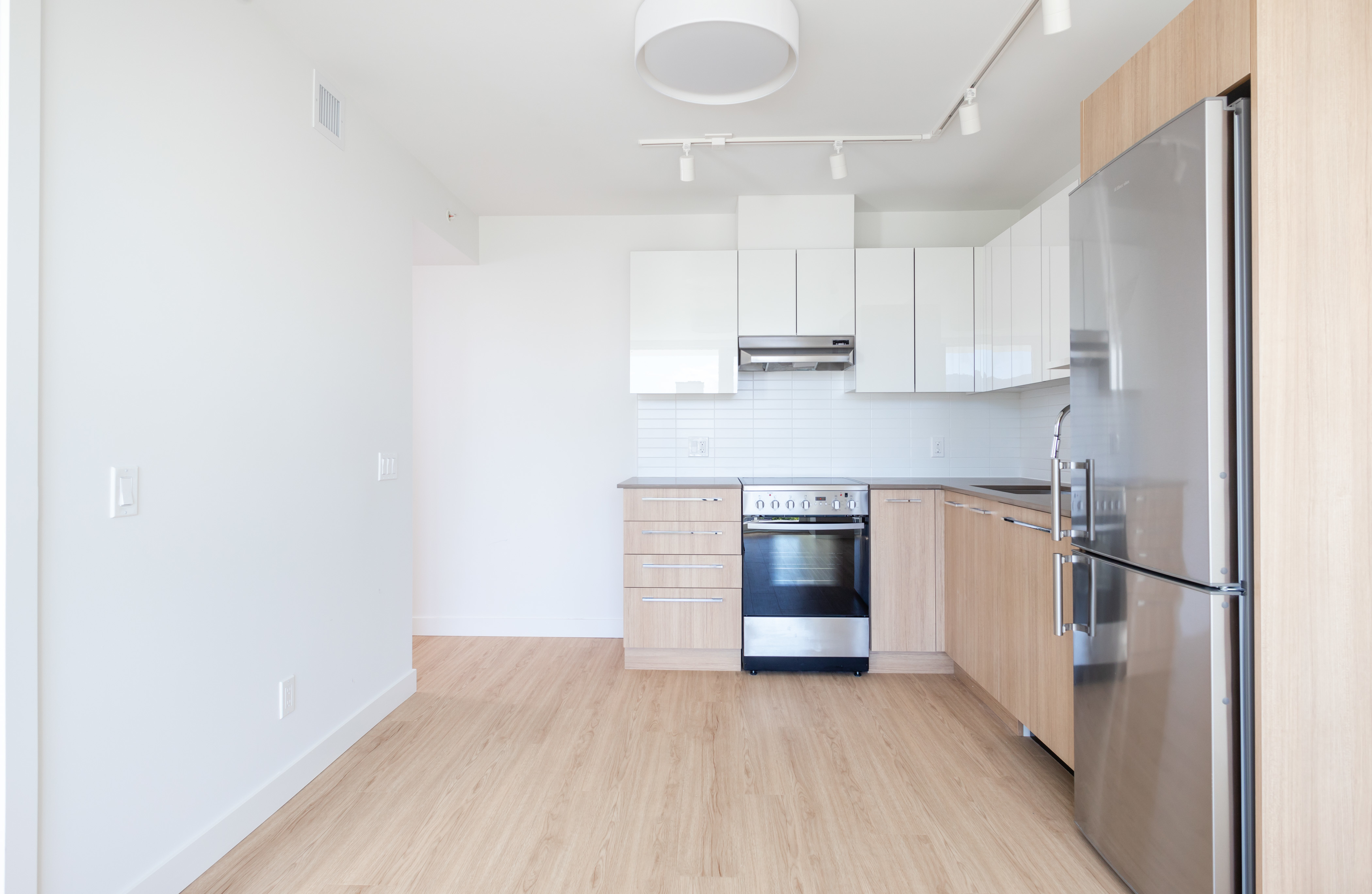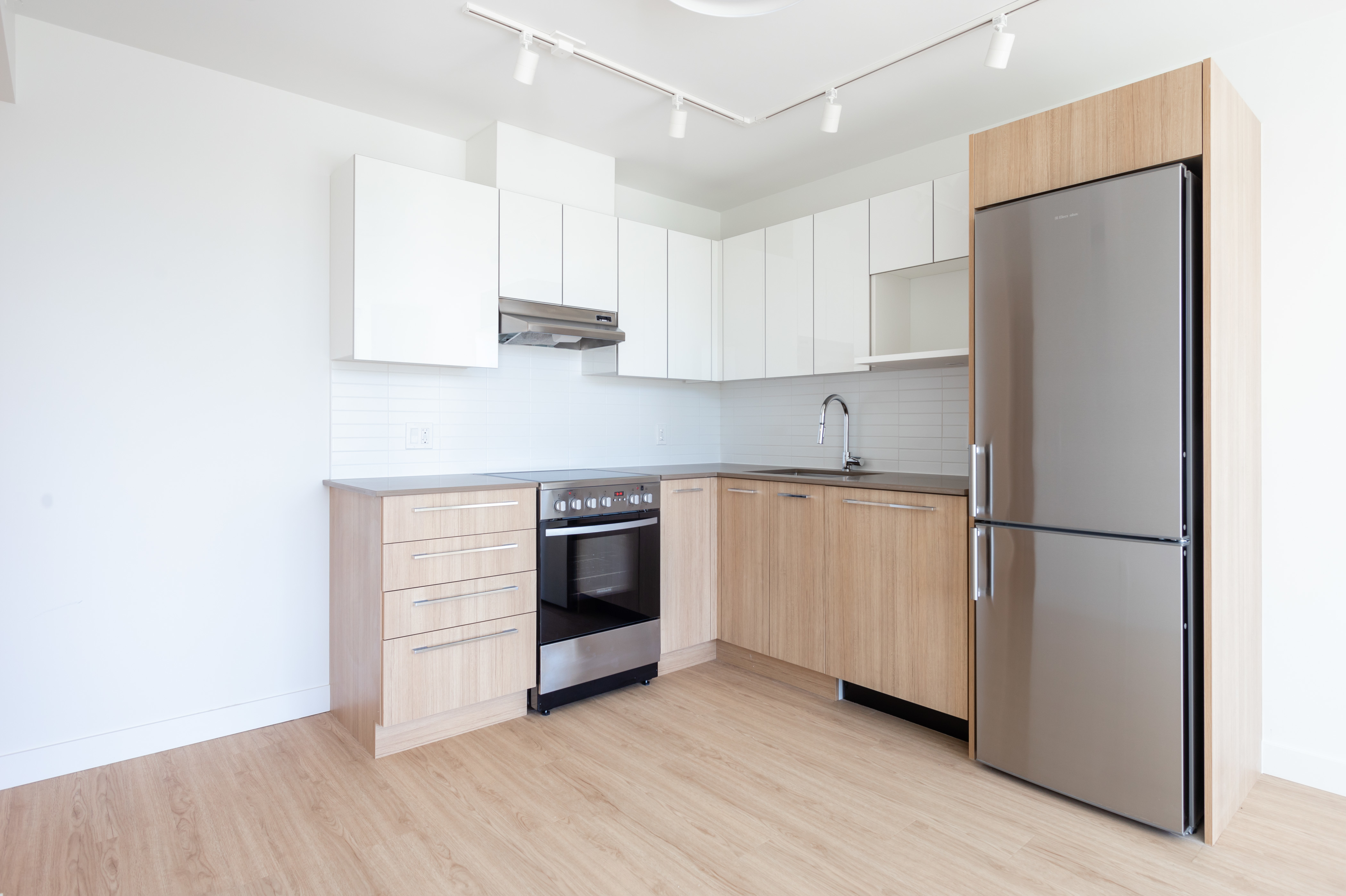 The C5 plan is one of our most favoured suites. With a glamourous western view and a large patio, this one-bedroom is a great spot to watch the sunset over English Bay. This one-bedroom home features an L-shaped kitchen to maximize every inch of this 415 square foot home; alongside this, a Jack and Jill bathroom creates great flow. Vinyl plank floors and stone counters make up some of the modern finishes in this home.