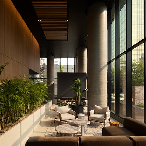 A 24-hour concierge service, parcel room and lounge seating surrounded by a tranquil bamboo garden.