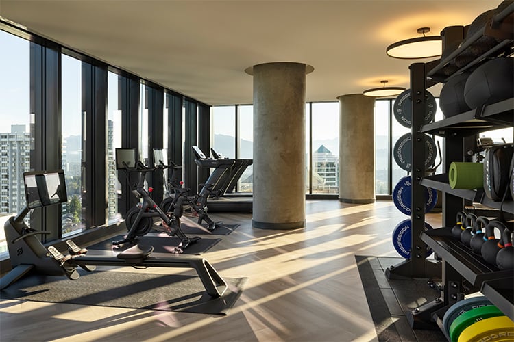 2,000 square foot fitness centre with state-of-the-art equipment and unobstructed views of the park and cityscape.